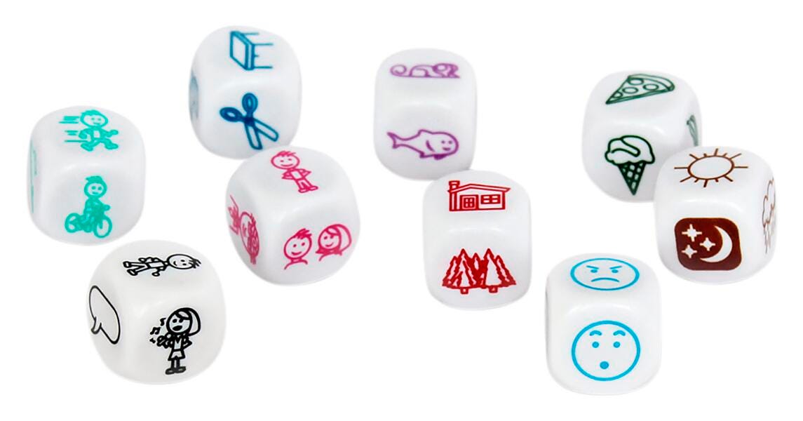 • Collection of ten beautifully illustrated dice for generating creative stories