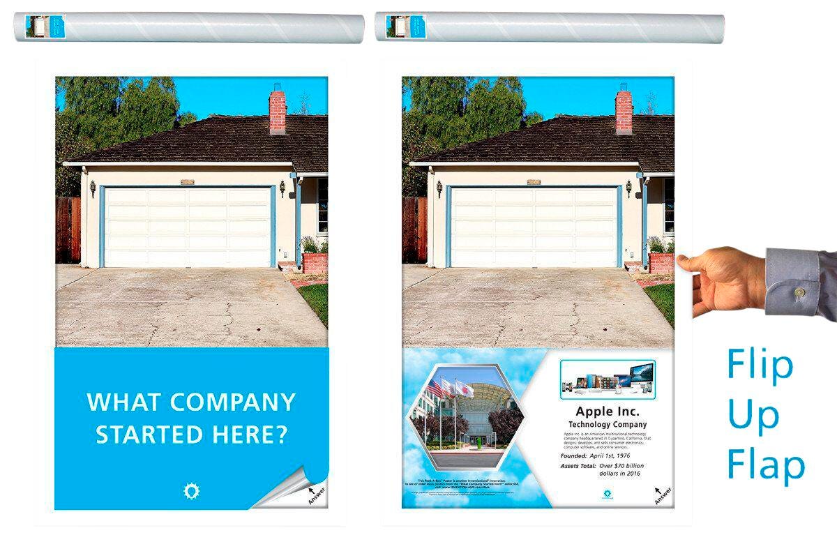 This Peek-A-Boo® poster highlights the humble beginnings of Apple, the technology company that encouraged all to “Think different.” Teachers can use this in their lesson plans to inform students that even a tech guru as well-known and popular as Apple had to start somewhere – in this case, a garage!Features
