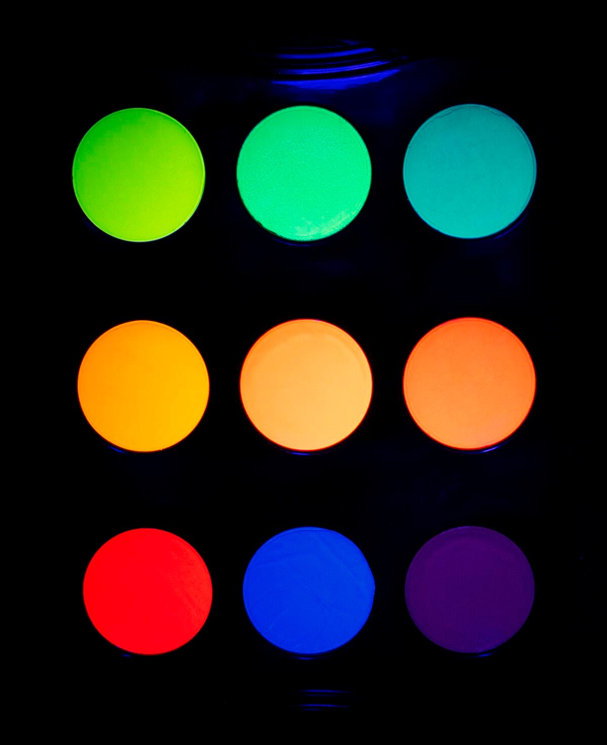 These high quality flourescent air paints come in an attractive sturdy black tray. They work up easily with a few drops of water and a brush. Pans hold 10 grams of paint. Art Paint is semi opaque/semitransparent paint and has strong bright colors, rich with pigment.Features