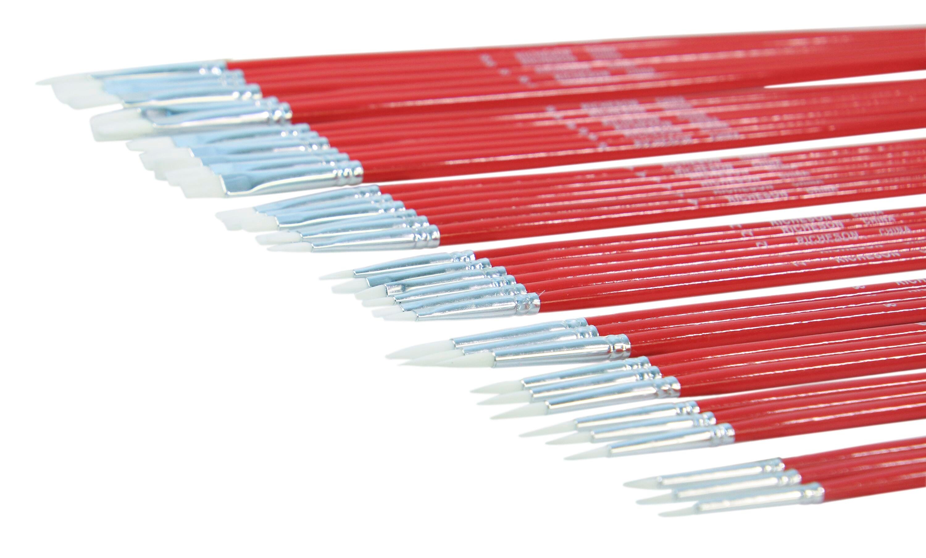 Jack Richeson White Synthetic Brush Classroom Pack, Assorted Brush Types, Long Handle, Assorted Sizes, Pack of 36