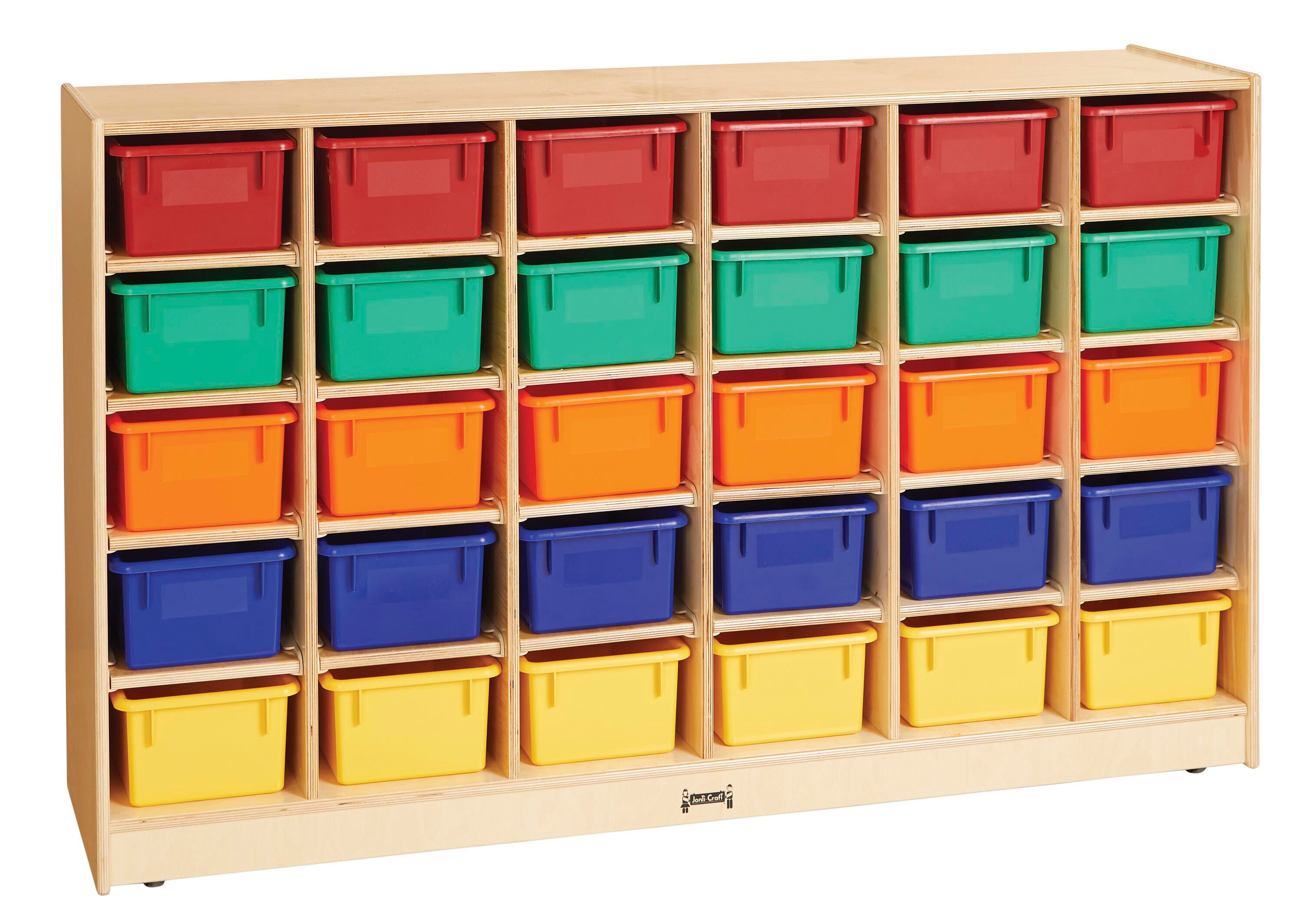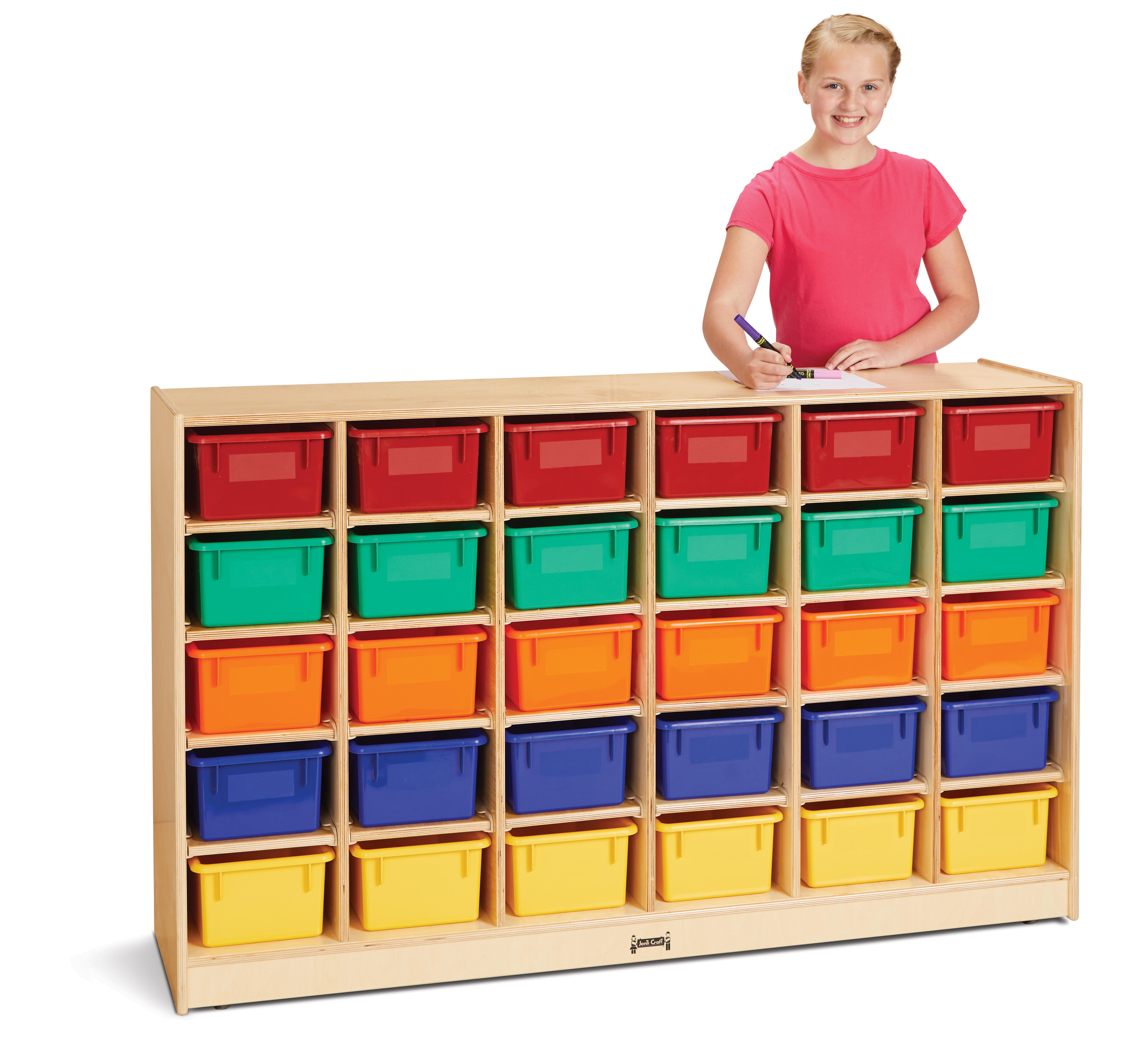 Jonti-Craft 30 Cubbie-Tray Mobile Storage Unit, 57-1/2 x 15 x 35-1/2 Inches, Colored Trays