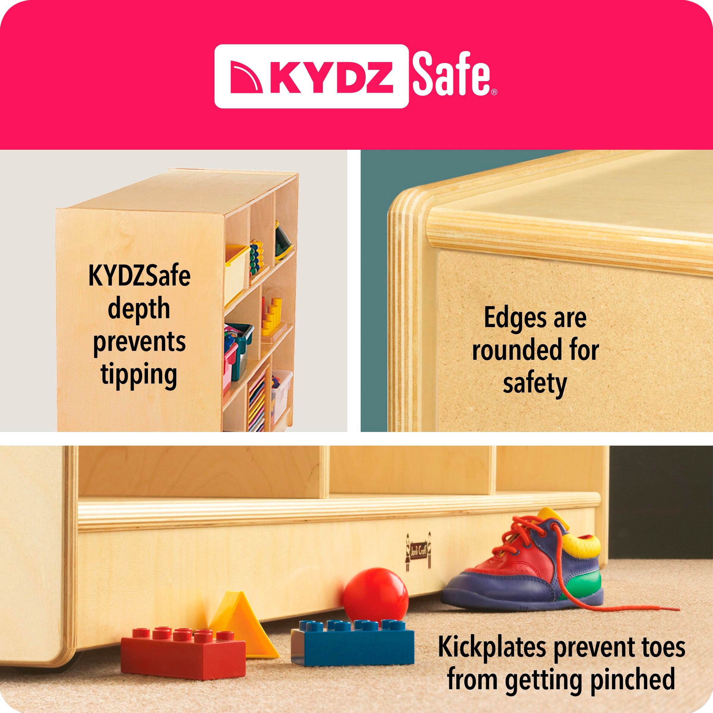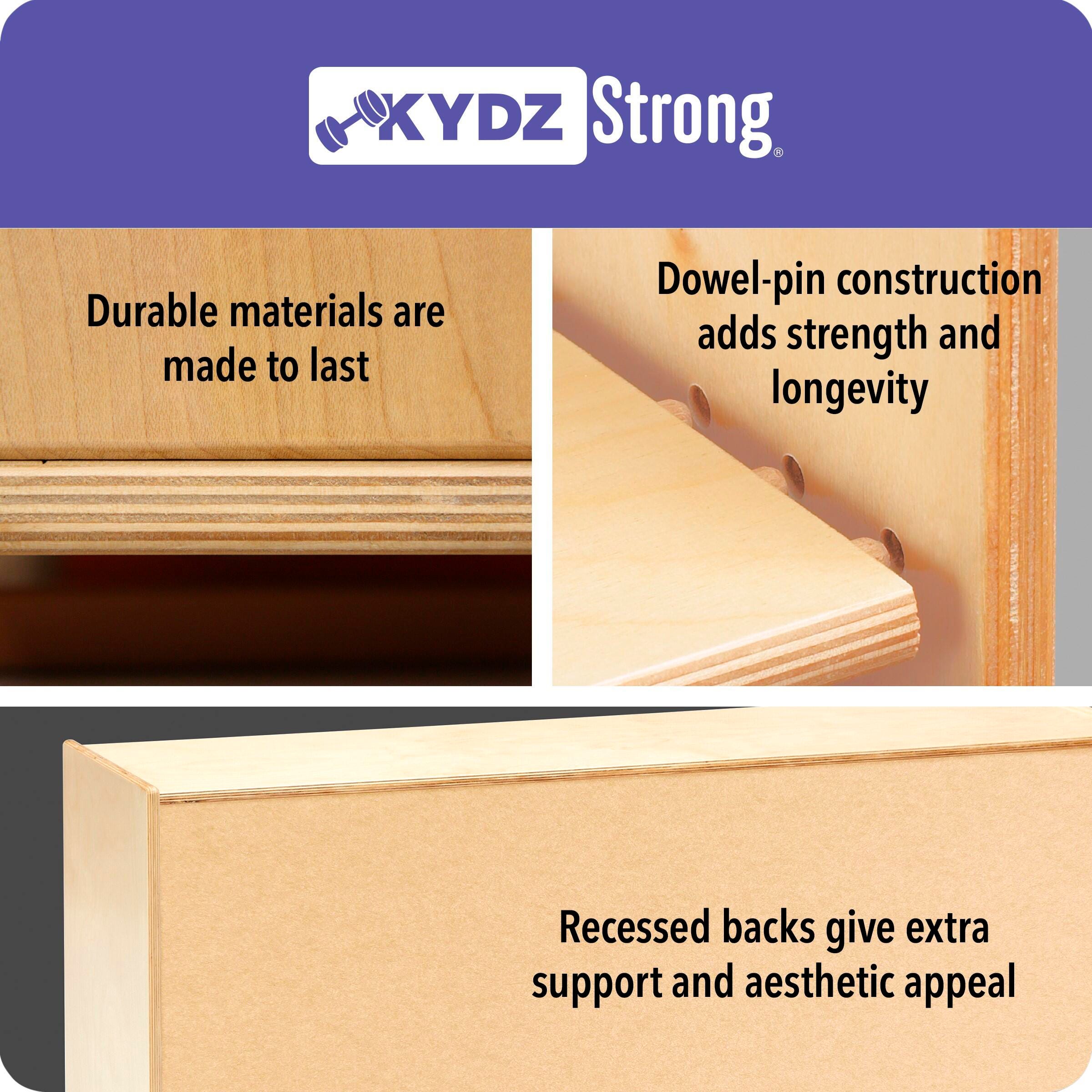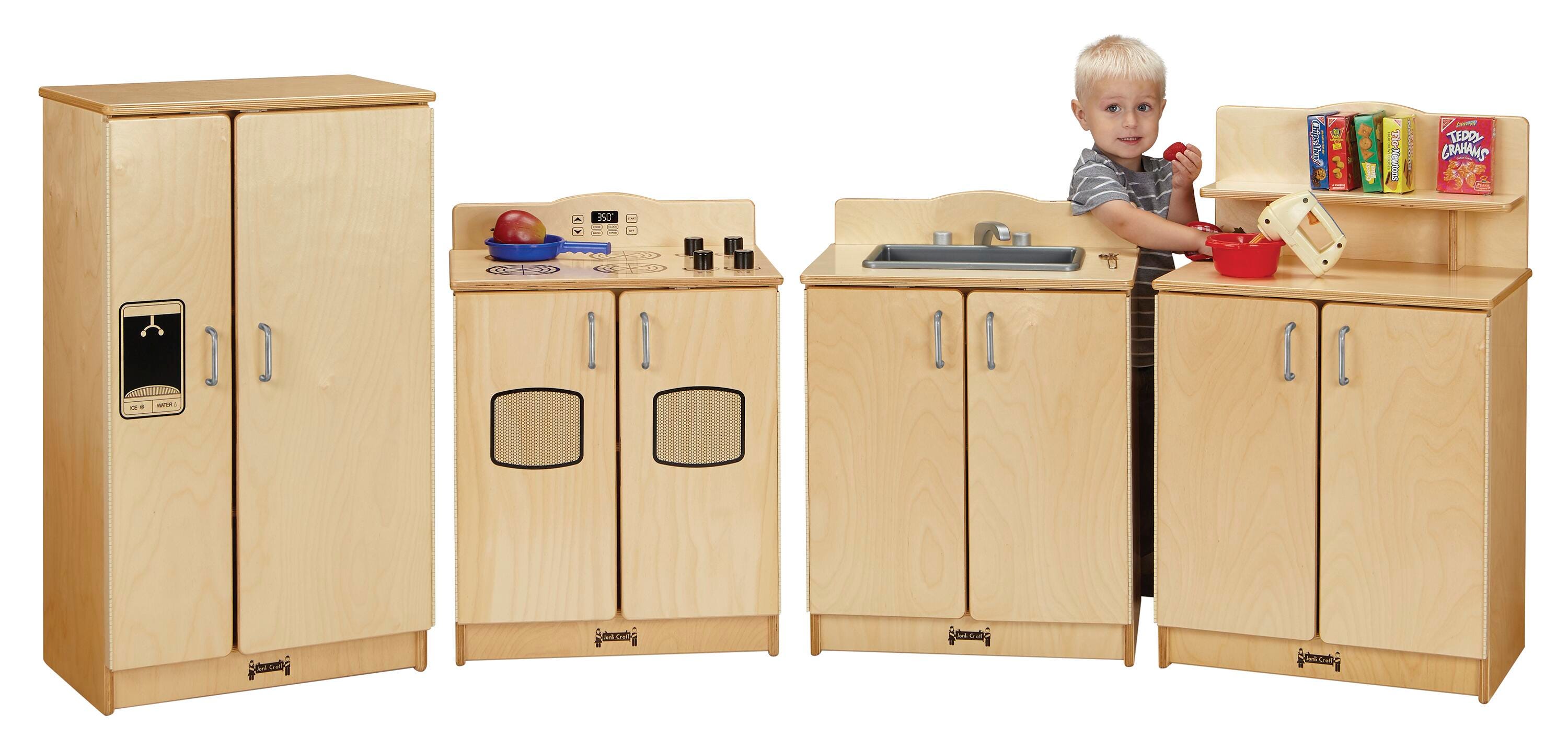 Kids can pretend to wash and put away dishes with this sink sized just for them. Magnetic catches help keep doors closed while chrome style handles and faucet provide a high-end aesthetic. Features an interior shelf for storing dishes and other kitchen items. Provides realistic play with wooden turn-button sink handles and moveable faucet. Counter is 23.5” high.