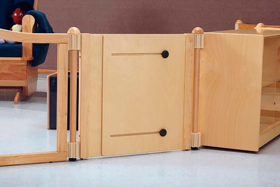 KYDZ Suite Panels help create or define a space for your unique needs. They’re great for dividing and supervising multi-age spaces. Clear acrylic See-Thru Panels allow safe viewing of children and enhance natural light. The Accordion Panel adjusts to span spaces from 24 inches up to 36 inches, and anywhere in between.