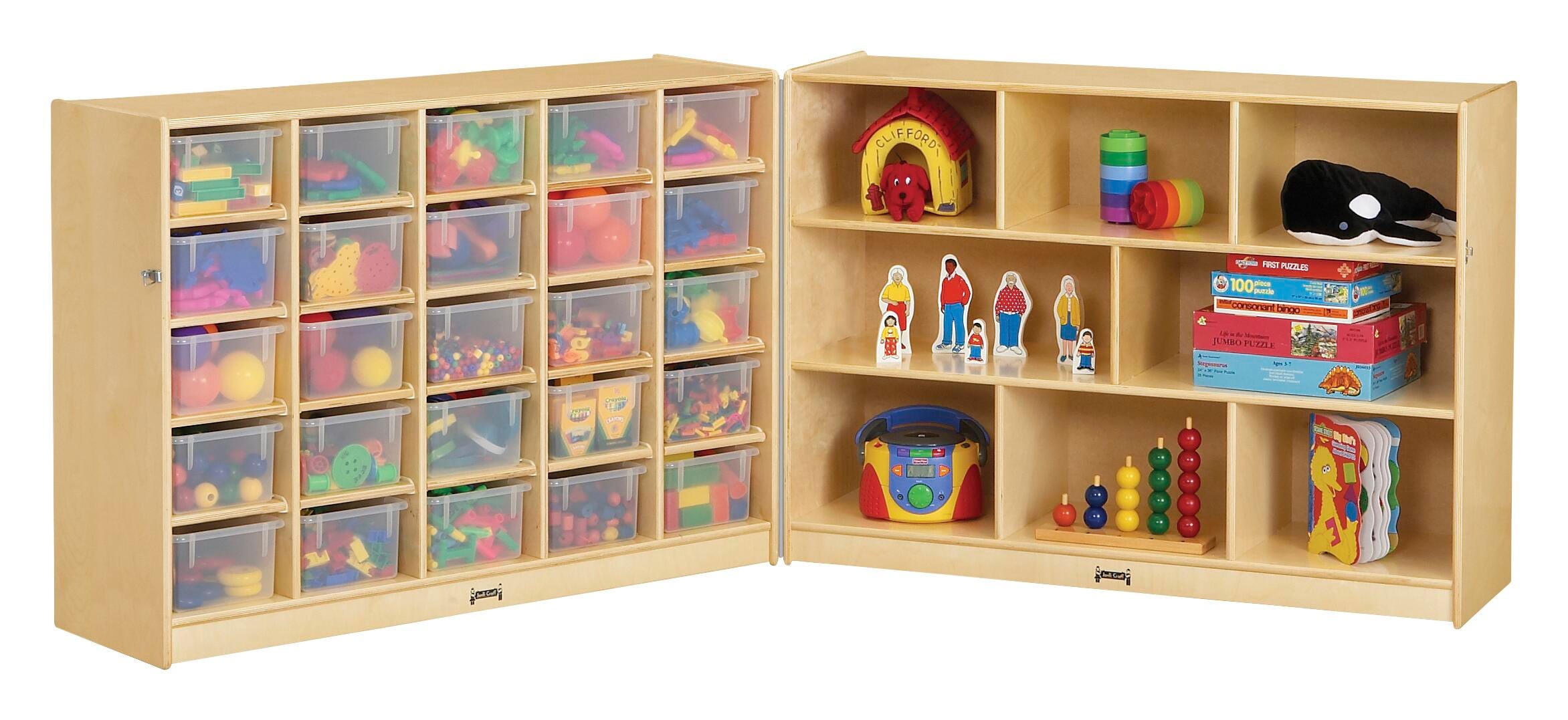 Jonti-Craft 25 Cubbie-Tray Mobile Fold-n-Lock, Clear Trays, Magnetic Write-n-Wipe Back, 96 x 15 x 35-1/2 Inches