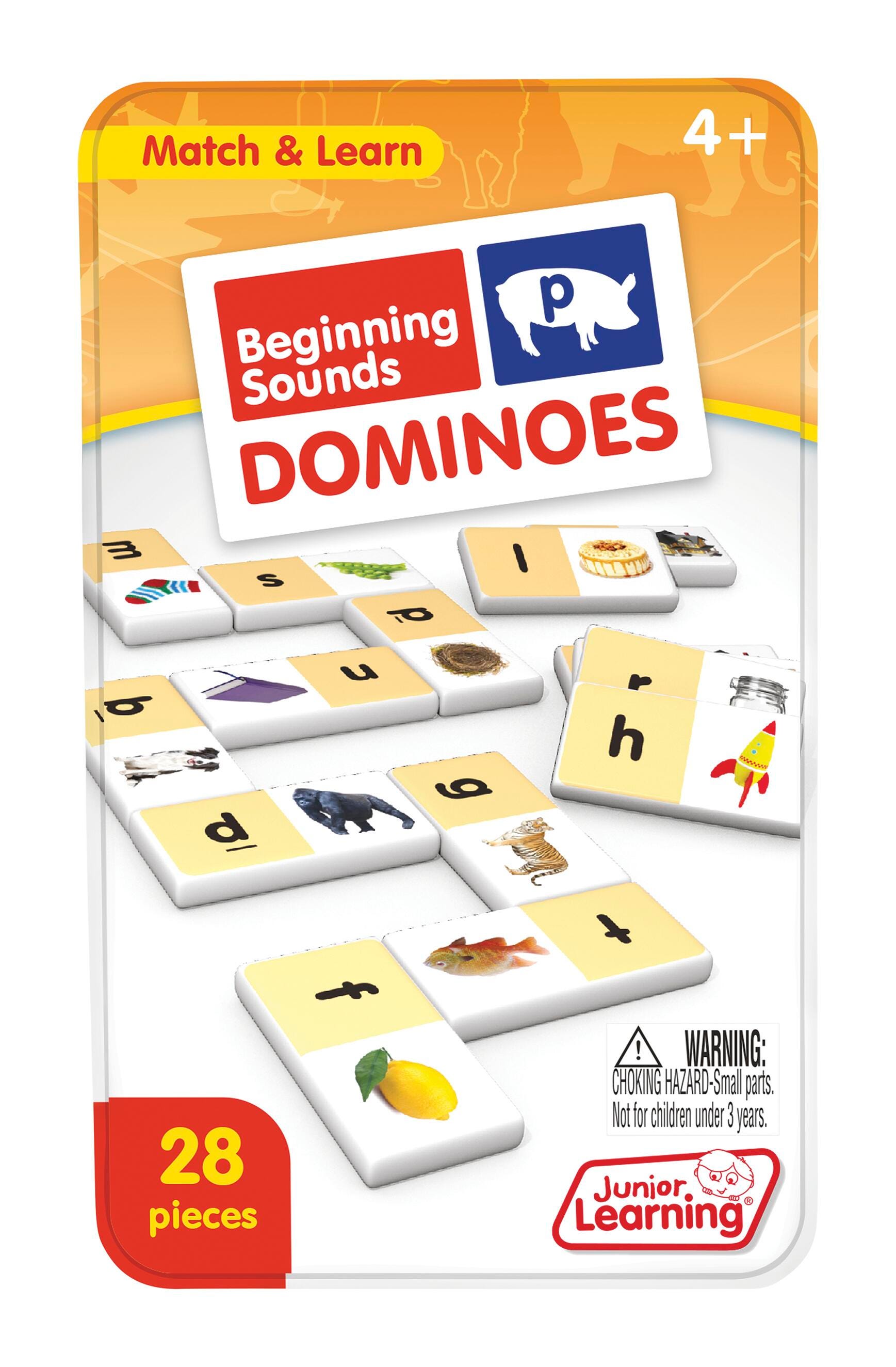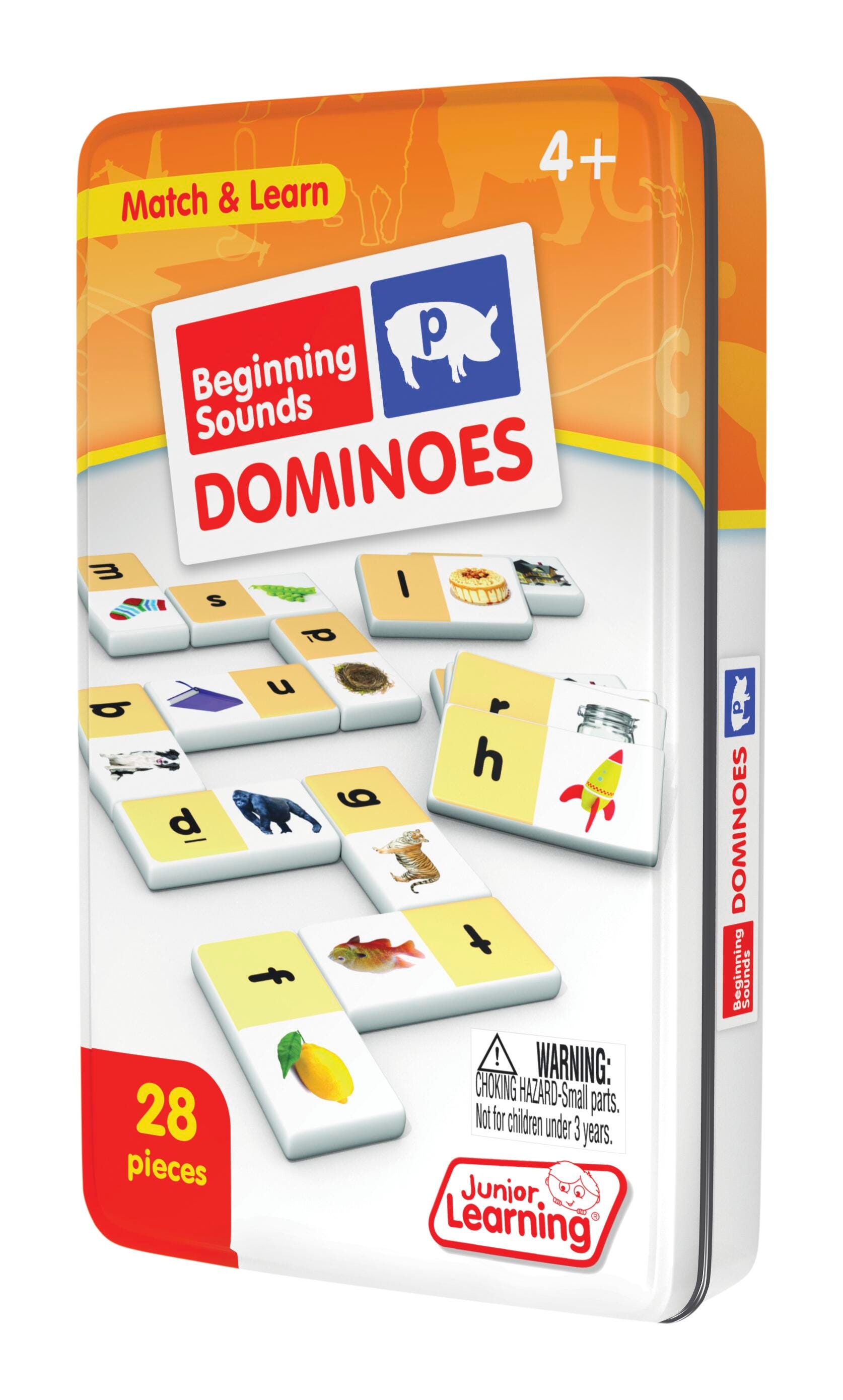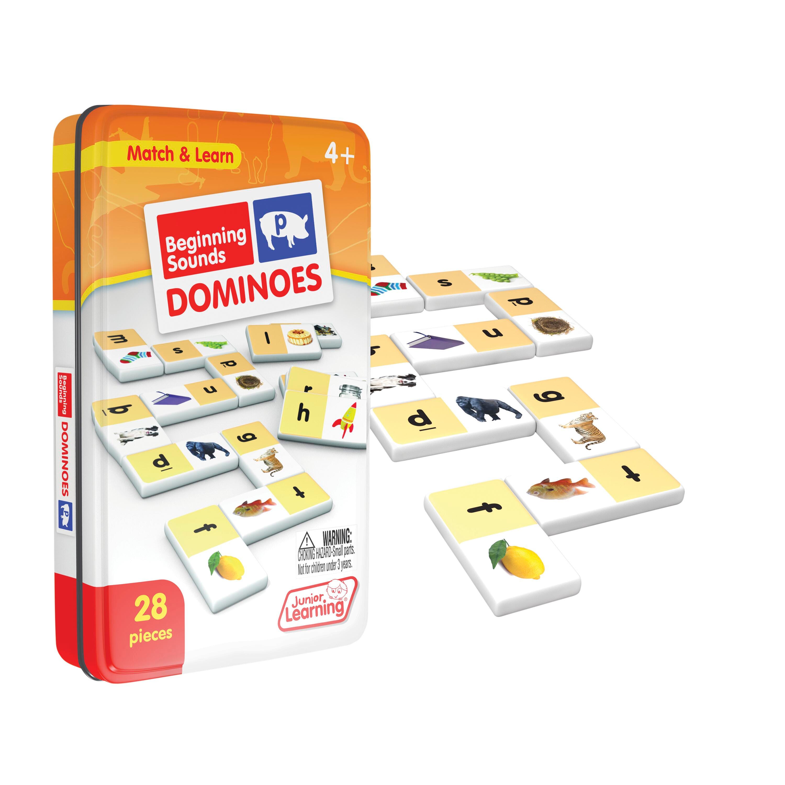 Beginning sound dominoes include a 28 piece set on thick plastic dominoes. Children will love the feel of real dominoes as they complete the beginning sound matching game. Ages 4+