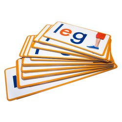 CVC Word Strips includes 24 magnetic word strips for building consonant-vowel-consonant words. Each strip has a photographic image and is double-sided with a word frame on one side and the word printed on the other. Perfect for self-correcting.Features