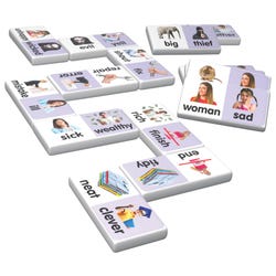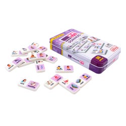 This set of synonym dominoes includes 28 pieces set of thick plastic dominoes. They come in a collectors tin for storage, and children will love the feel of real dominoes as they complete the synonym-matching challenge.Features