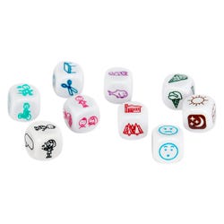 - Collection of ten beautifully illustrated dice for generating creative stories