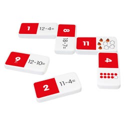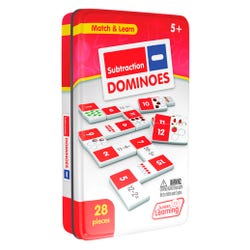 Subtraction dominoes include a 28 piece set on thick plastic dominoes. Children will love the feel of real dominoes as they complete the subtraction matching game. Appropriate for ages 5-10 years old.Features