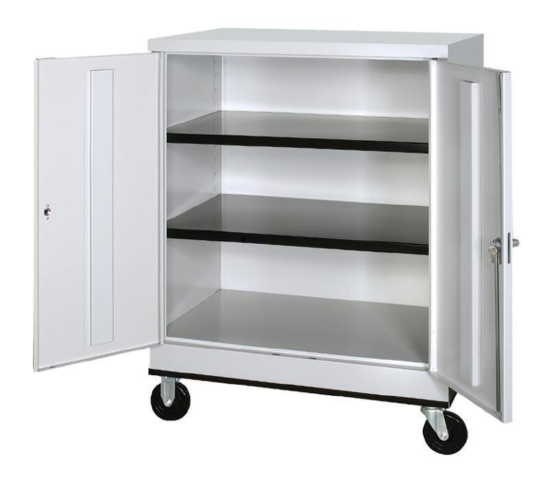 This durable mobile storage cabinet with a lateral file and two shelves will help to keep your school classrooms and offices organized!