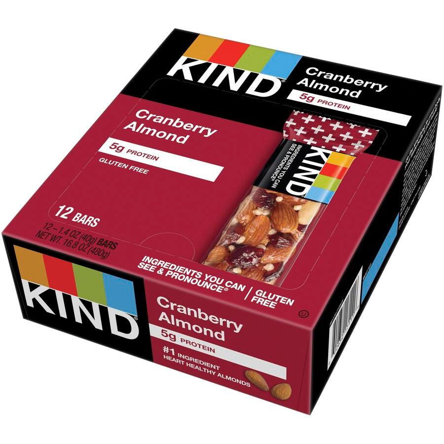 KIND Cranberry Almond Kind Plus Bars are an all-natural, gluten-free blend of nuts, fruits and whole grains that provide essential nutrients like fiber, protein and antioxidants. Each bar contains 50 percent of the recommended daily intake of Vitamins A, C and E, which fight free radicals and help maintain the immune system. Non-GMO ingredients are very low in sodium, cholesterol-free and do not contain hydrogenated oils. Individual packaging ensures freshness and allows you to take these treats with you on-the-go.