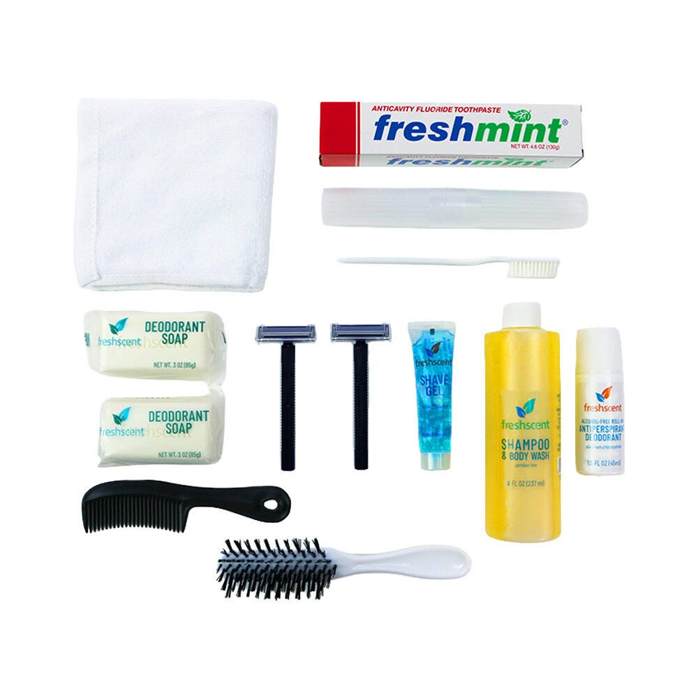 Send a care package of essentials to those in need with preassembled essential supply kits from Kits for Kidz. From basic hygiene items like soap and shampoo to toothpaste, a hairbrush comb, shaving cream, and disposable razors, and beyond, this Adult Hygiene Kit offers an easy and helpful way to provide assistance to children and adults affected by poverty or other hardships. Bag measures 9 L x 4 W x 6 H.
