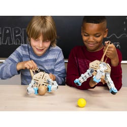 The Mechanical Claw Classroom Pack from KiwiCo guides students as they build jointed claws inspired by the biomechanics of a human hand. Students will explore engineering and design concepts, articulation, and tension as they swap the number of joints and fingers in their claws. The kit also provides engineering challenges, like picking up a slippery marble and playing a clawsome board game, for students to group up and apply their learning. The project is broken up into multiple suggested class periods and serves 20 to 40 students for versatile application. Designed for 3rd to 5th grade classrooms.Features