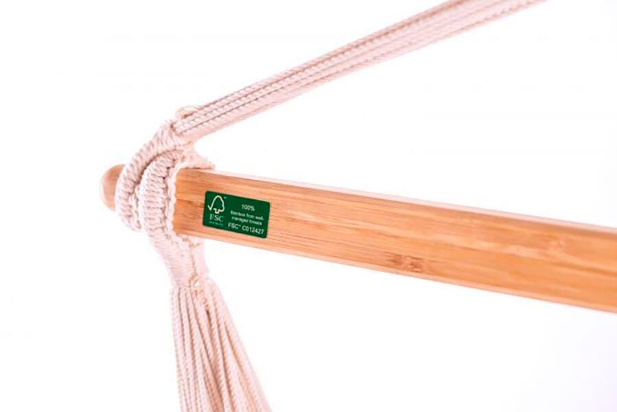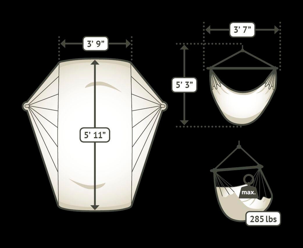 Mindfully designed with comfort in mind, the Habana Hammock Chair is made of soft, certified organic cotton and responsibly sourced wood. Extra suspension cords provide a feeling of weightlessness. More ethical, more comfortable. Spreader-bar is made from high-quality bamboo, which makes it particularly robust and attractive. Easy to maintain; machine washable, quick-drying and weather-resistant. Seat Depth: 5 feet 11 inches; Seat Width: 3 feet 9 inches; Total Width (Spreader-Bar): 3 feet 7 inches; Total Height: 5 feet 3 inches. Required Hanging Height: 6 feet 7 inches. Can hold up to 285 pounds. Hanging hardware NOT included.