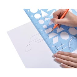 Ideal size for students and teachers! The geometry stencil measures 10-1/2 x 8 Inches, making it an ideal size to use when drawing math and design concepts in workbooks and loose-leaf paper.Features
