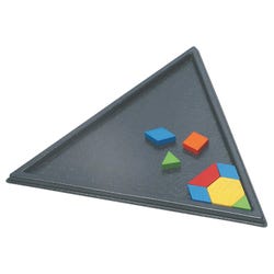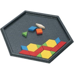 Learning Advantage Pattern Block Trays made of sturdy plastic encourages creative design using wooden or plastic pattern blocks. Trays help to create colorful mosaic designs and discover fractional relationships. Tray set includes one hexagon shaped tray and one triangle shaped tray. Each side of the hexagon tray is 6-1/2 inches in length. Each side of the triangle tray is 13-7/8 inches in length. Blocks are not included.Features