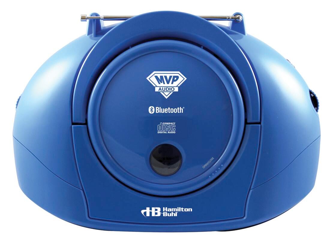 HamiltonBuhl AudioMVP Portable Stereo Boombox with Bluetooth Receiver, CD/FM Media Player! The HamiltonBuhl AudioMVP HB100BT2 is a convenient and innovative, quality stereo Bluetooth boombox/media player. Take your classroom technology up a notch with the boombox that lets you stream music from your Bluetooth enabled device in addition to playing CDs or FM Radio. This school-tested and teacher-approved boombox gives you unrivaled control of your listening experience!