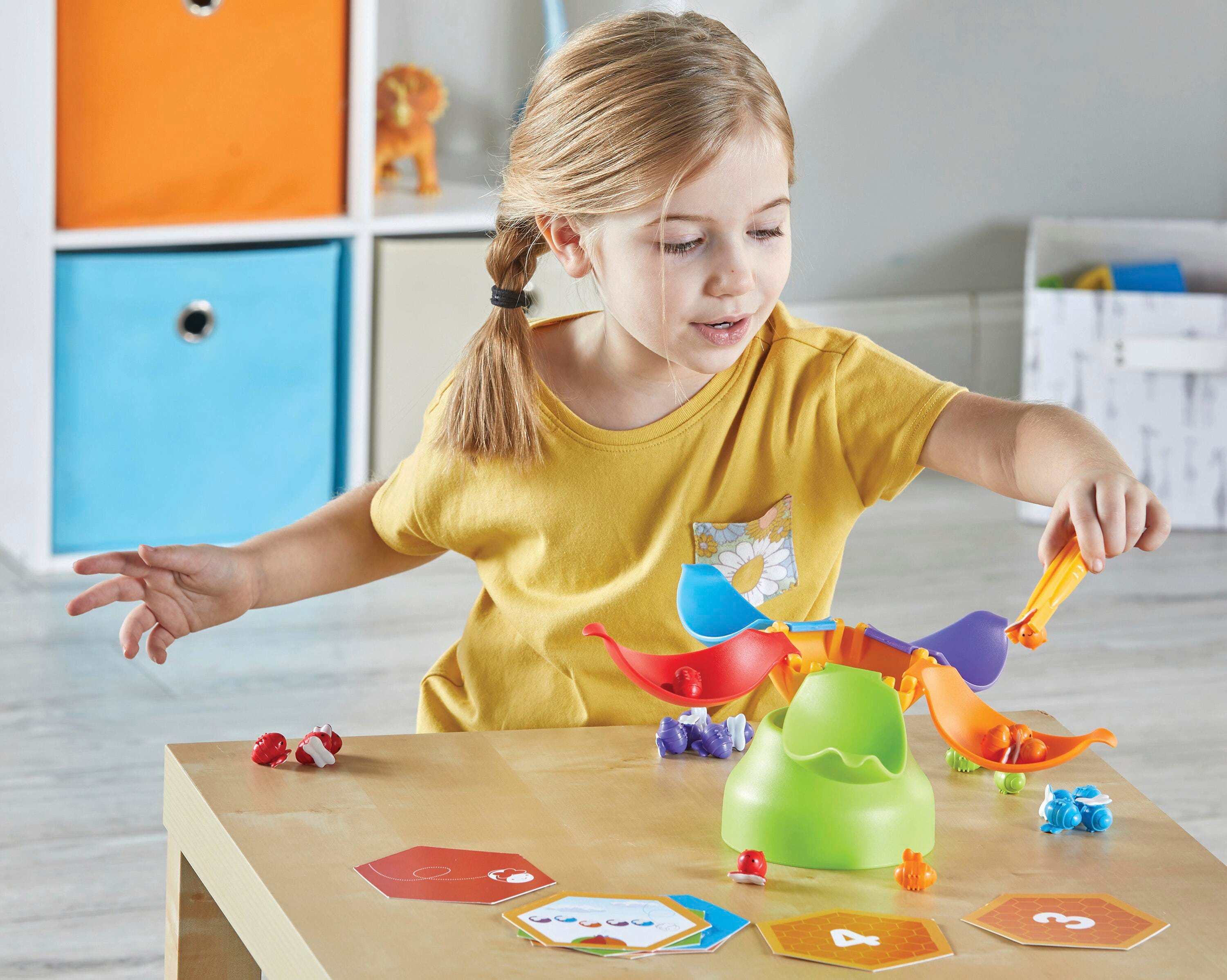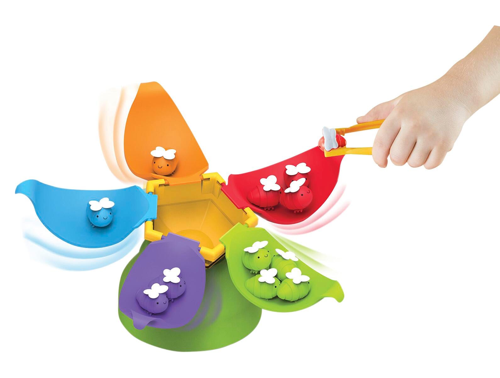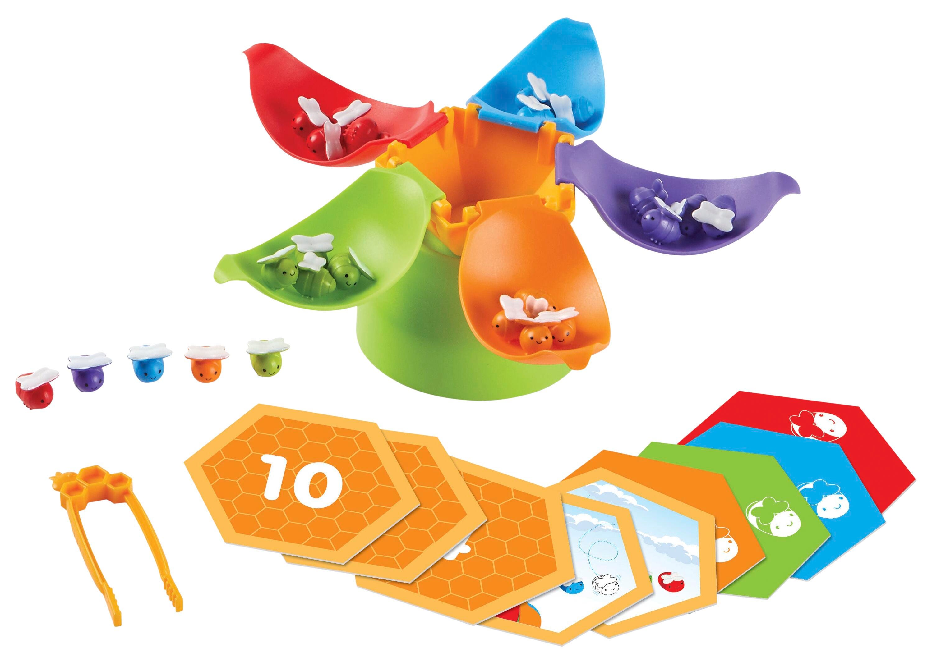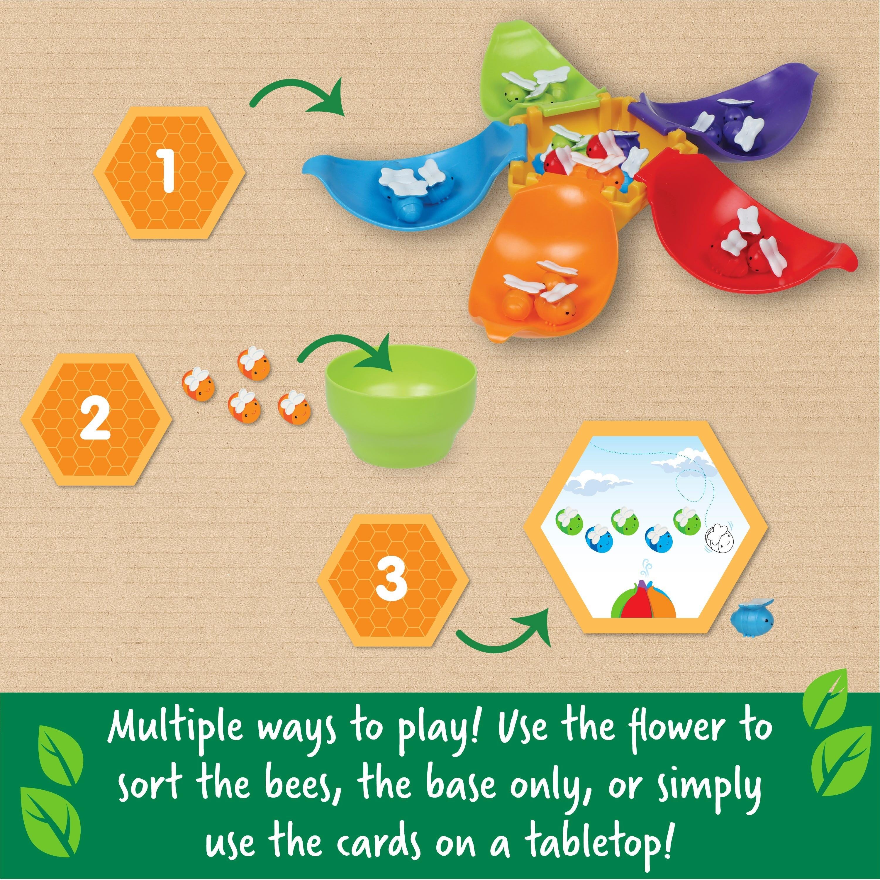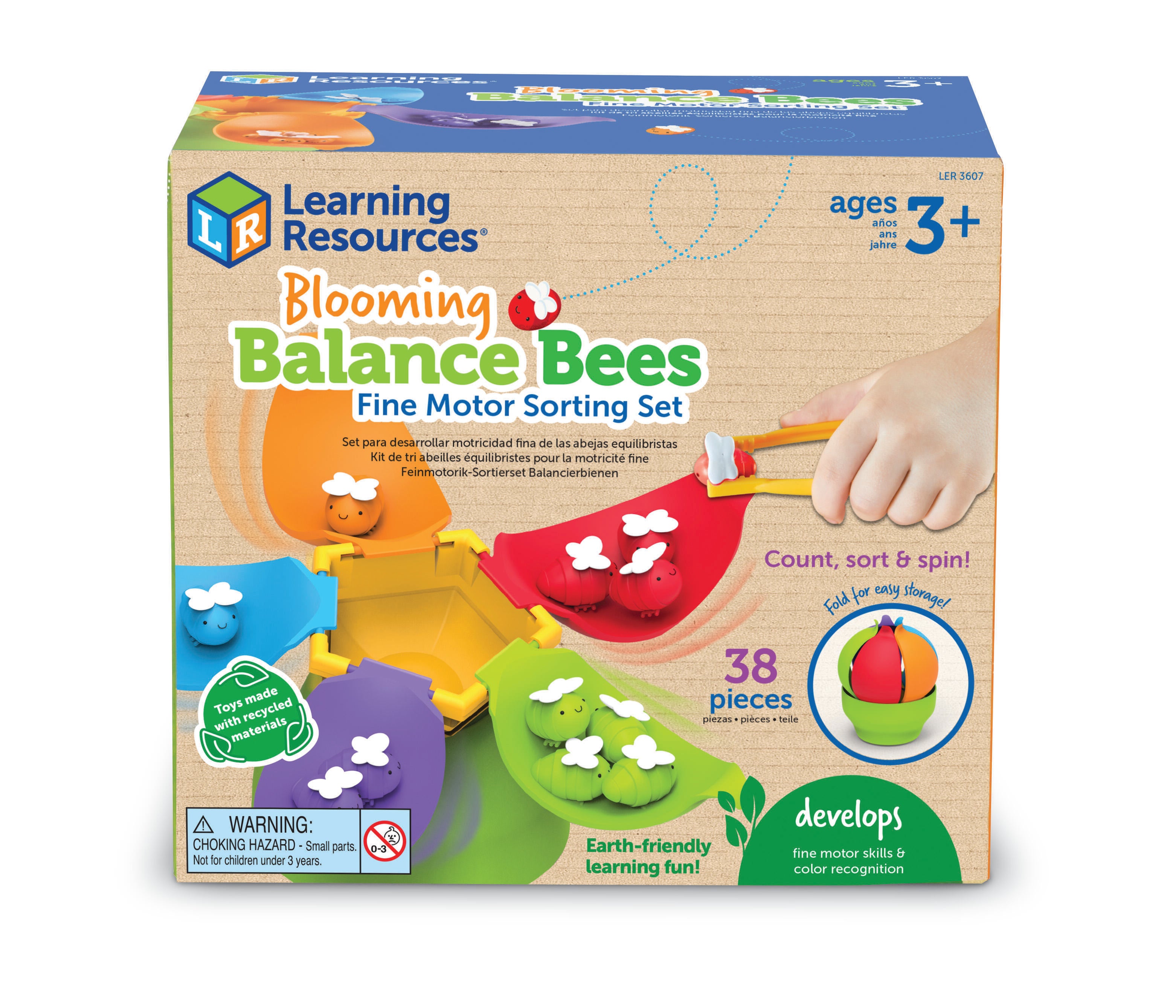 The Blooming Balance Bees Set from Learning Resources makes learning a buzzing good time! This colorful activity helps early learners practice counting and sorting and develops fine motor skills as they play. Children will love to use the handy tongs to place the bees onto the wobbling, spinning flower as they sort by color, number, and more. With multiple ways to play, they can sort the bees on the flower, in the base, or by using the included activity cards. This set comes with 25 bee counters, 10 activity cards, 1 balancing flower, 1 bowl, 1 pair of tongs, and 1 activity guide.
