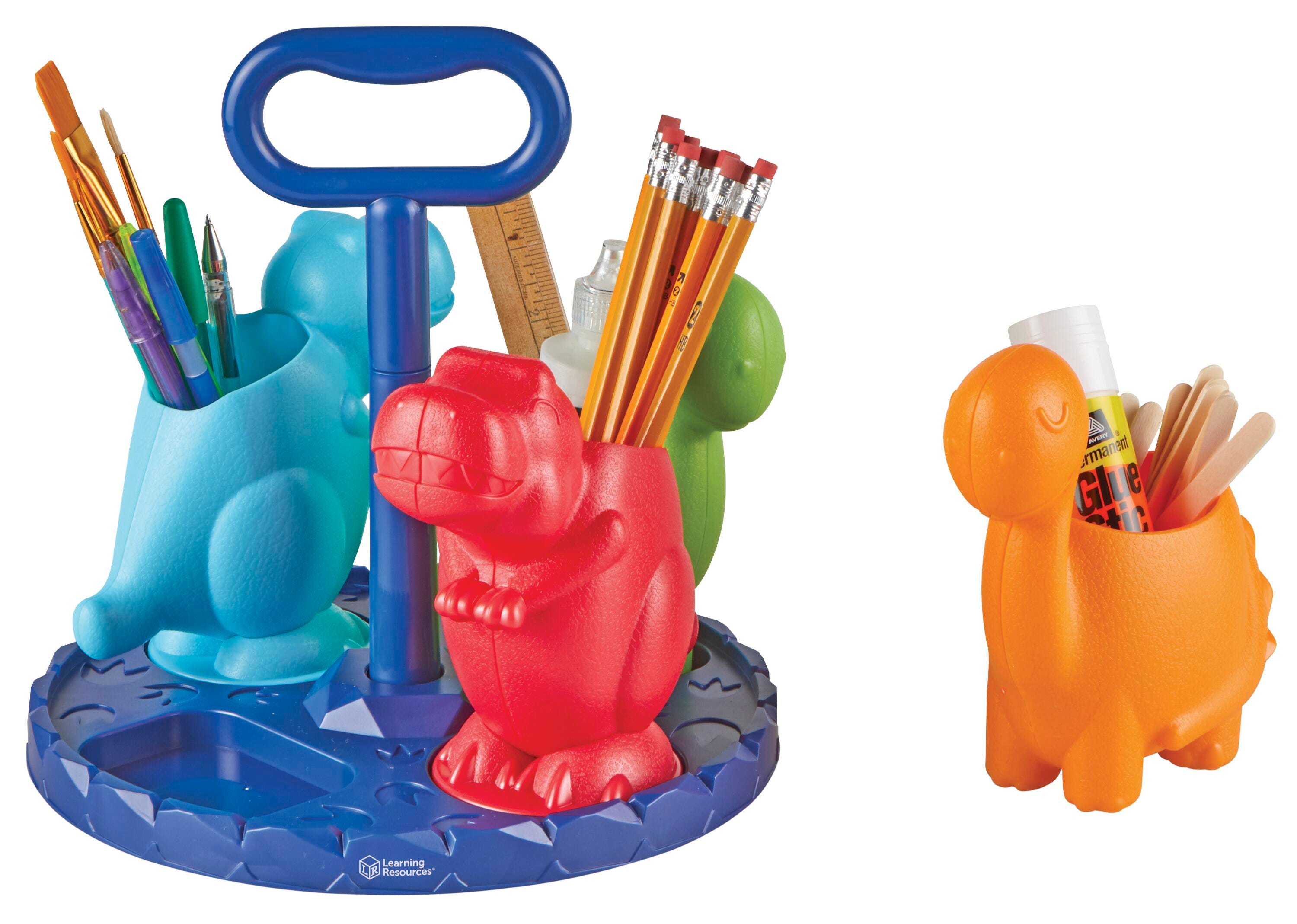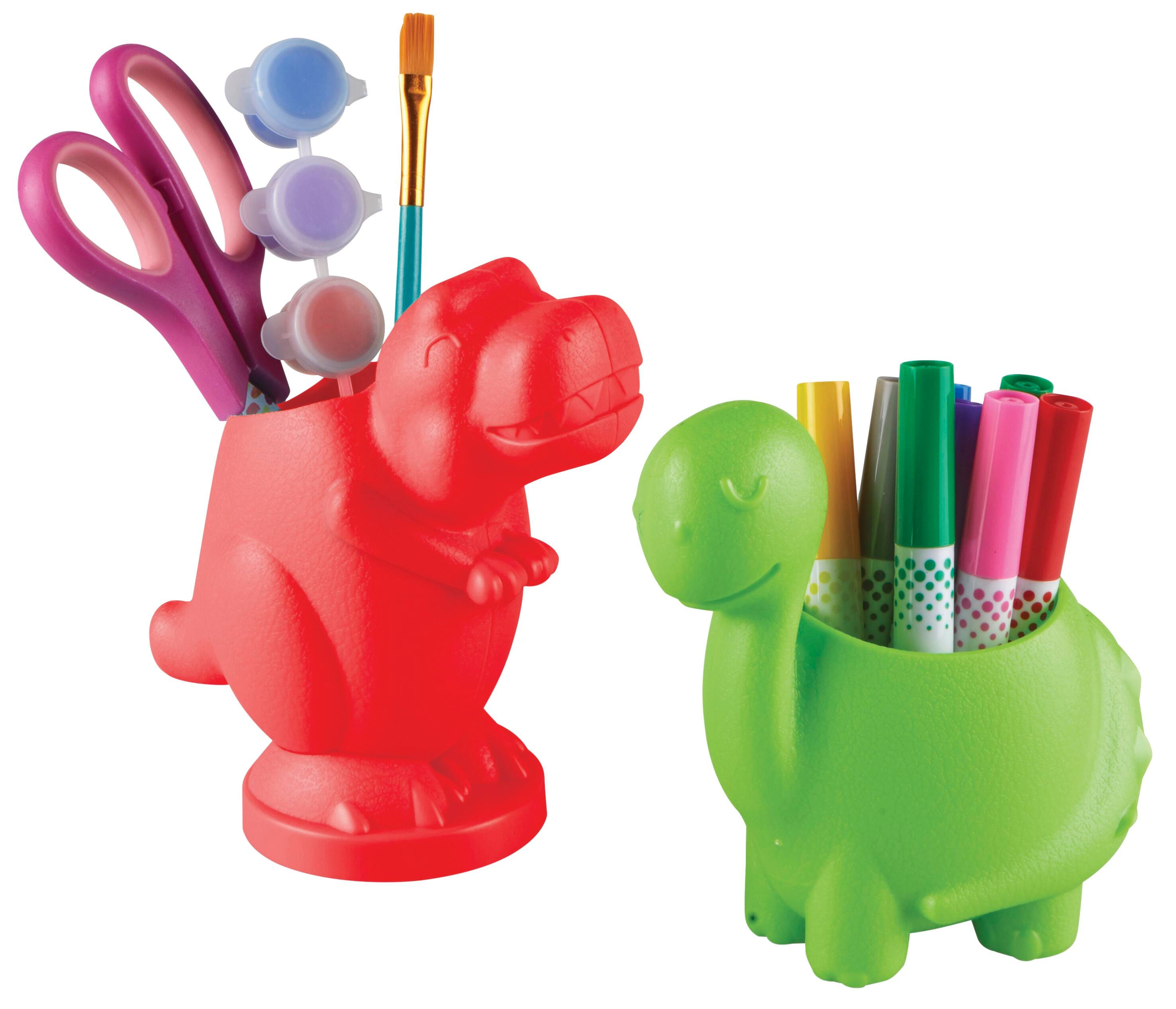 These friendly dinos are ready to make cleanup fun! The latest entry in our Create-a-Space Kiddy Center series features a four removable dino storage cups and a portable carrier base with easy-grip handle for on-the-go organization. Makes great room decor! Assembled tray measures 9-1/2 x 9-1/2 x 9-1/2 inches.