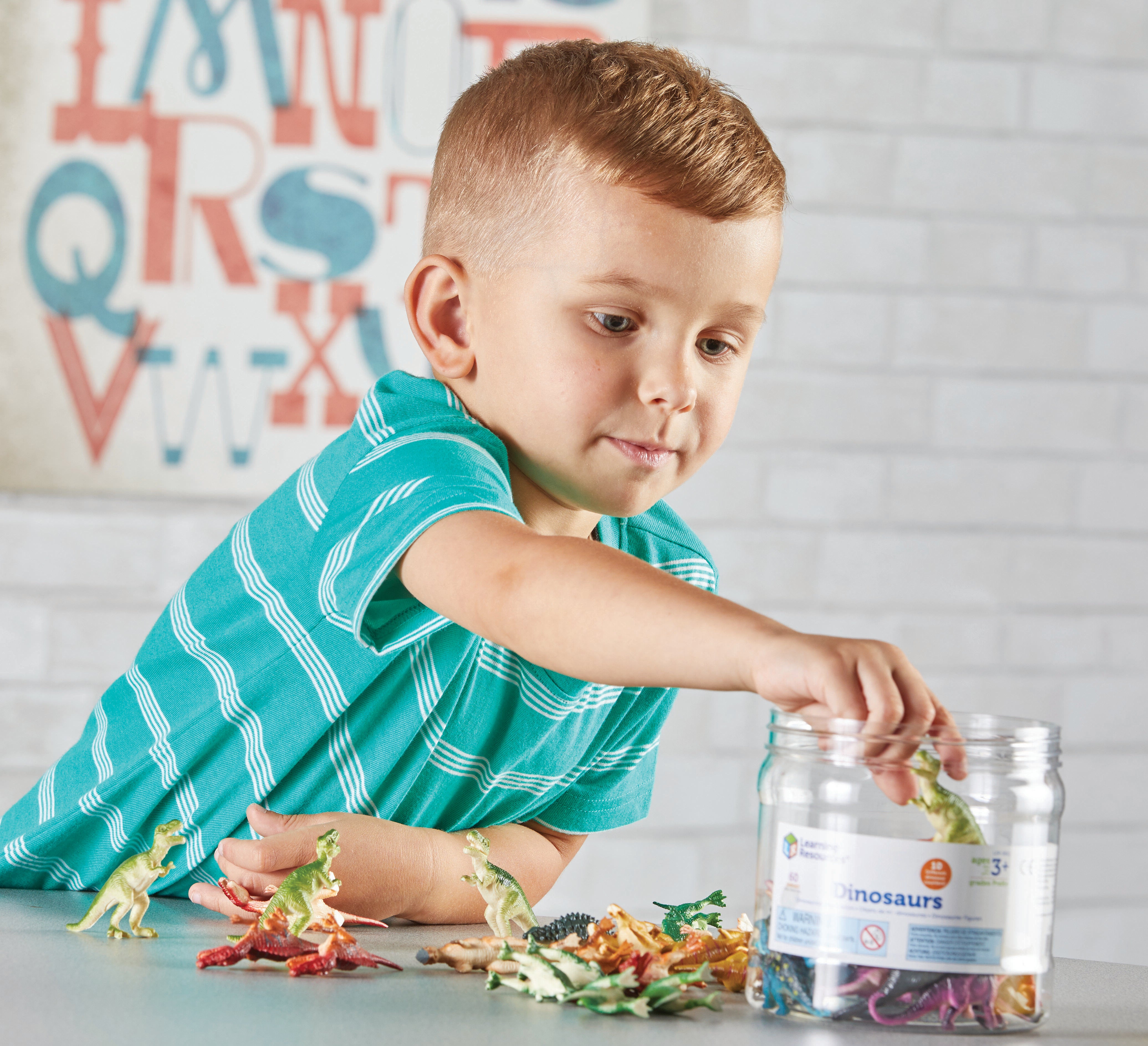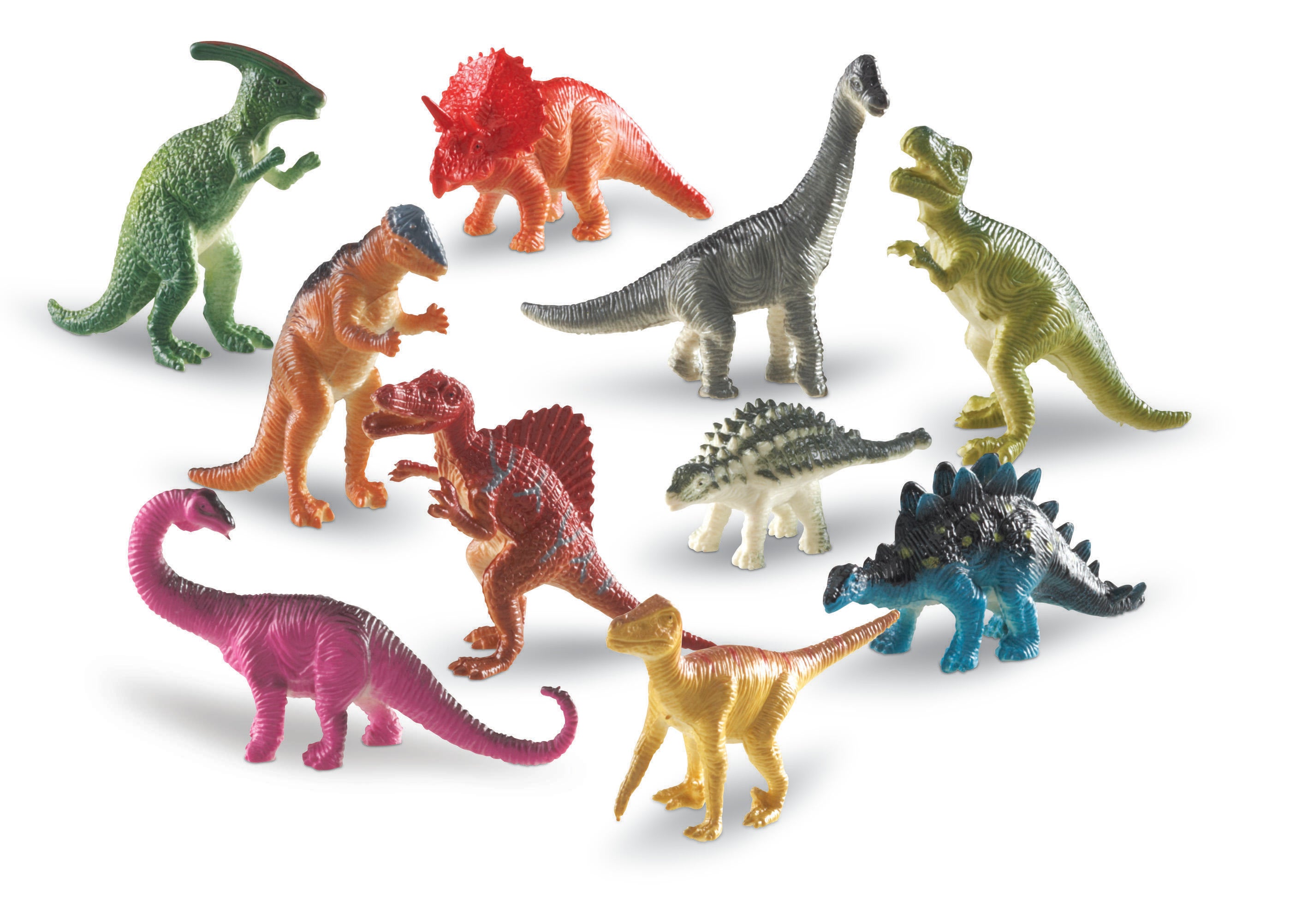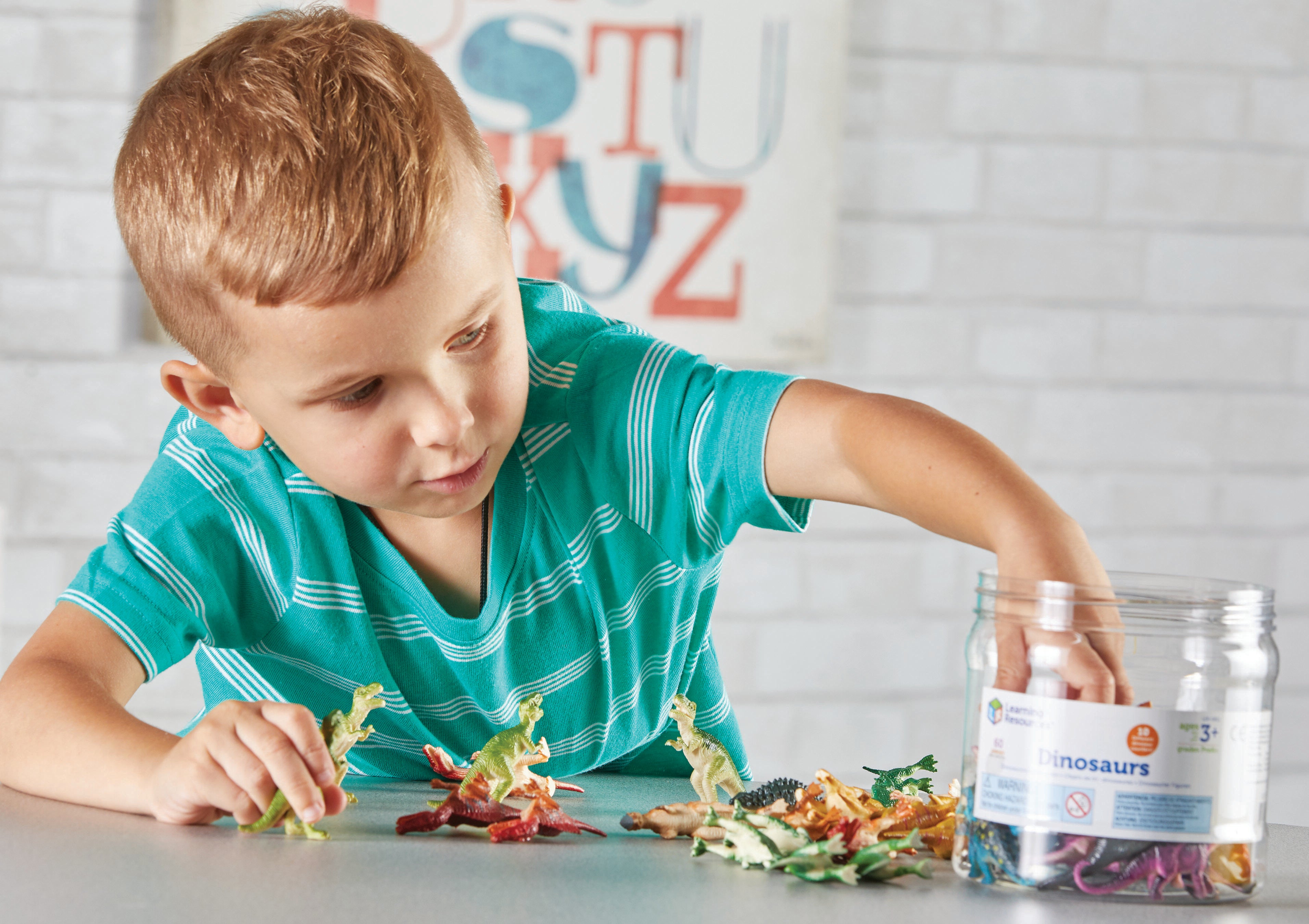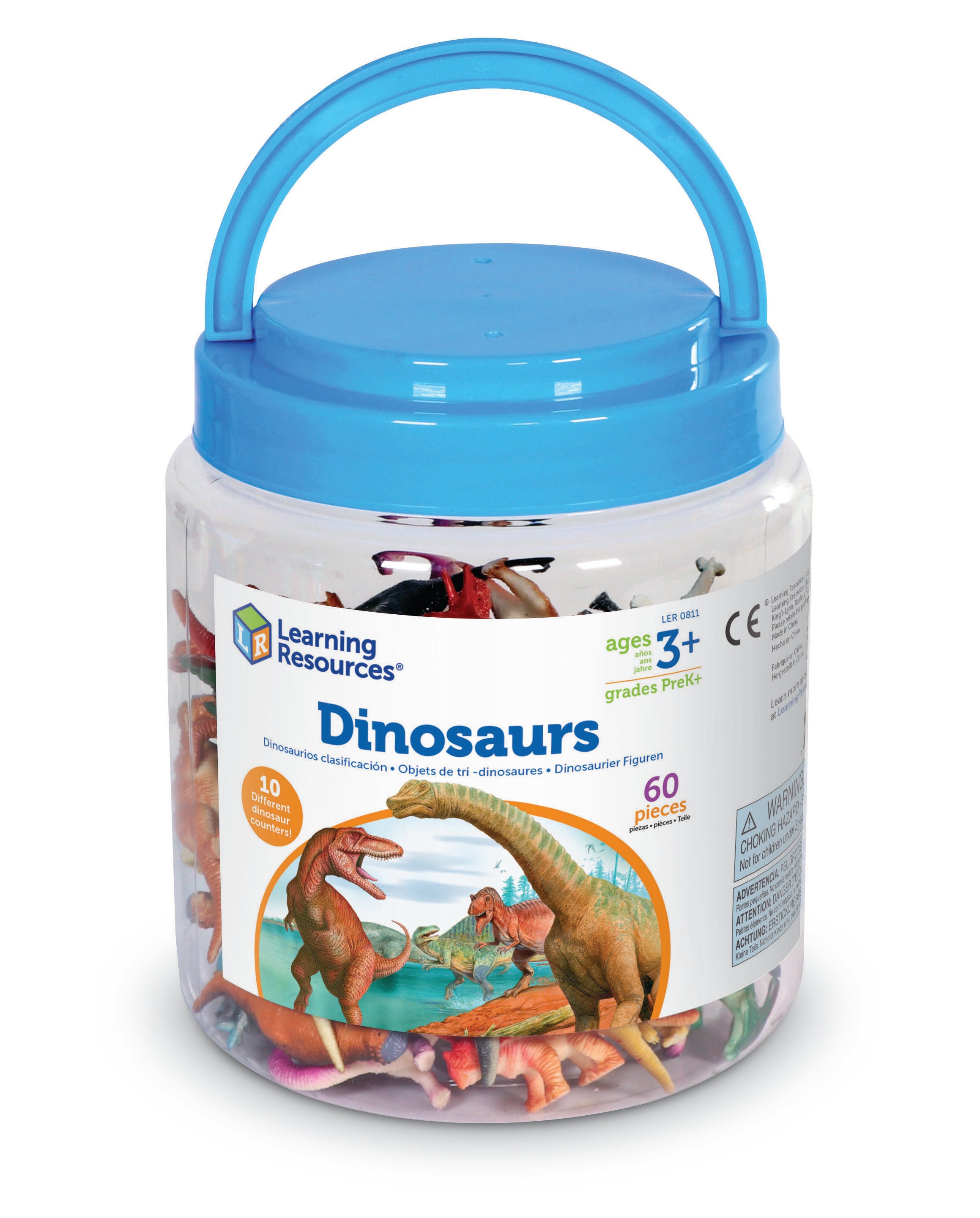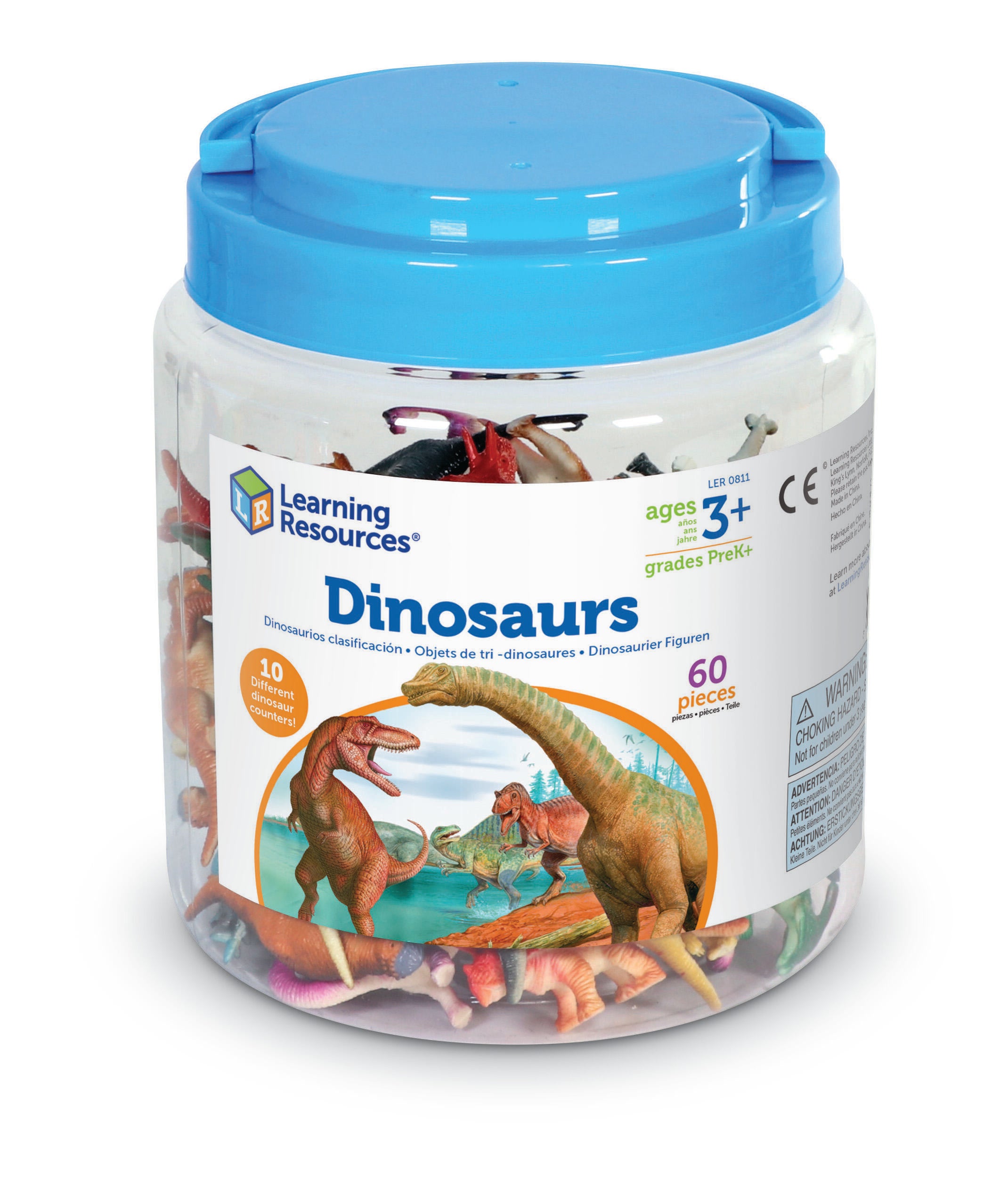 Learn to count with these colorful primitive creatures. Dino enthusiasts will enjoy developing number and quantity relationships, patterning, counting, and sorting skills. Set of 60 realistically detailed animals includes 6 each of 10 dinosaurs that come with their own convenient storage bucket.