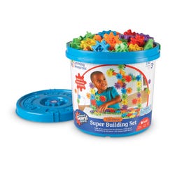 Learning Resources Gears, Gears, Gears! Super Building Set is a new spin on an old favorite! New colors add a bright, modern look while updated pieces make for easier building for younger children. Features plastic meshing gears, connectors and interlocking bases that offer hundreds of 3-D possibilities. Works with all Gears! Gears! Gears! building sets. Set of 150 also includes an activity guide. Ages 3 and up.