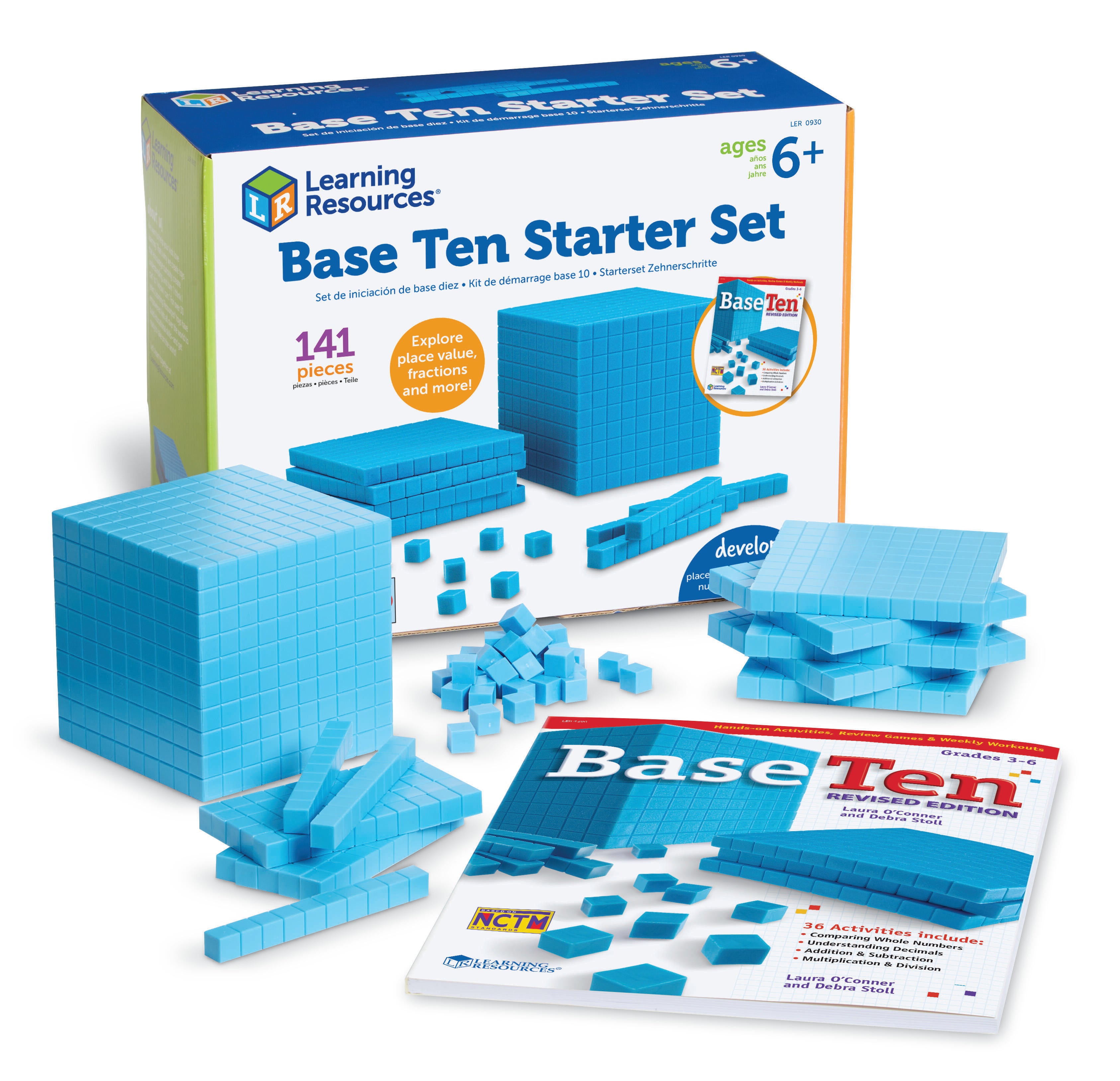 Learning Resources set of base ten components helps students understand abstract base ten concepts, including place value, estimation, operations, fractions, and more. Plastic set is washable and durable for years of hands-on activities. For 3 to 4 students. Ages 6 and up.