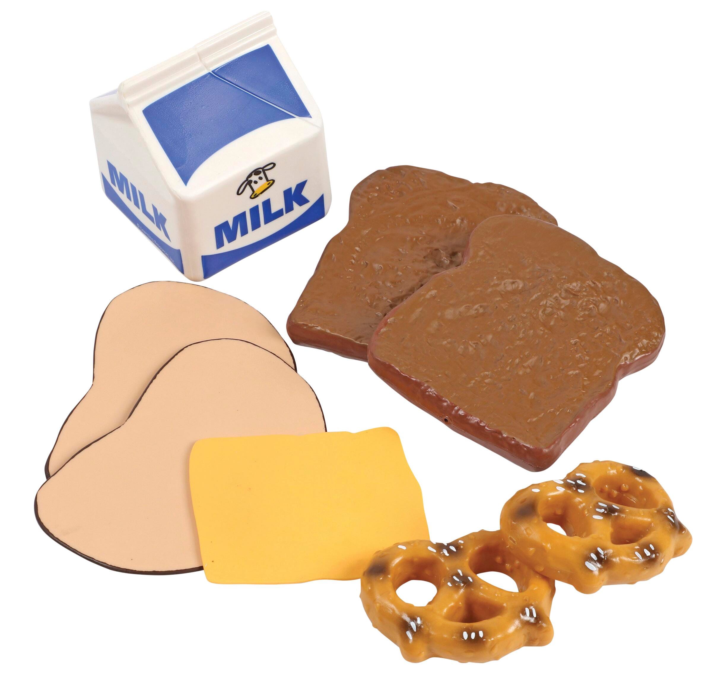 What’s for lunch? Turkey on wheat, please! Give kids a taste of a healthy lifestyle with this lunch basket full of nutritious meal options. All durable plastic pieces are actual size and wipe clean. Help kids make nutritious lunch choices on the go with realistic play food. Build a fresh, delicious sandwich, serve it with milk, and don't forget the fruit! Set also includes a sturdy shopping basket and Activity Card. Basket measures 1-3/4 L x 5-1/4 W inches.Features