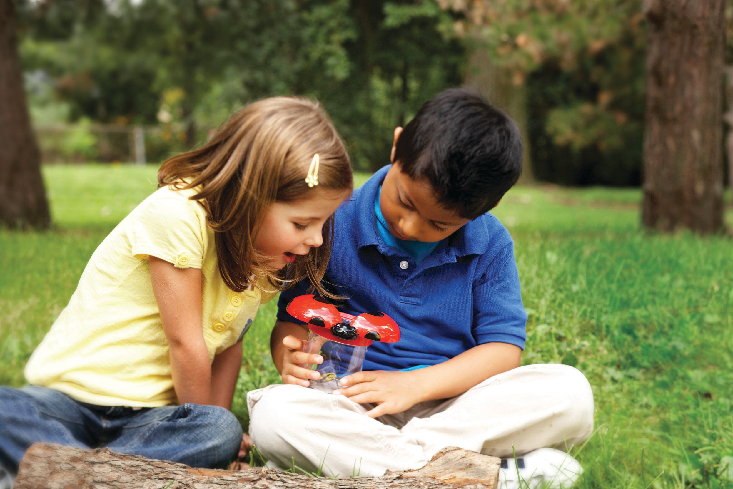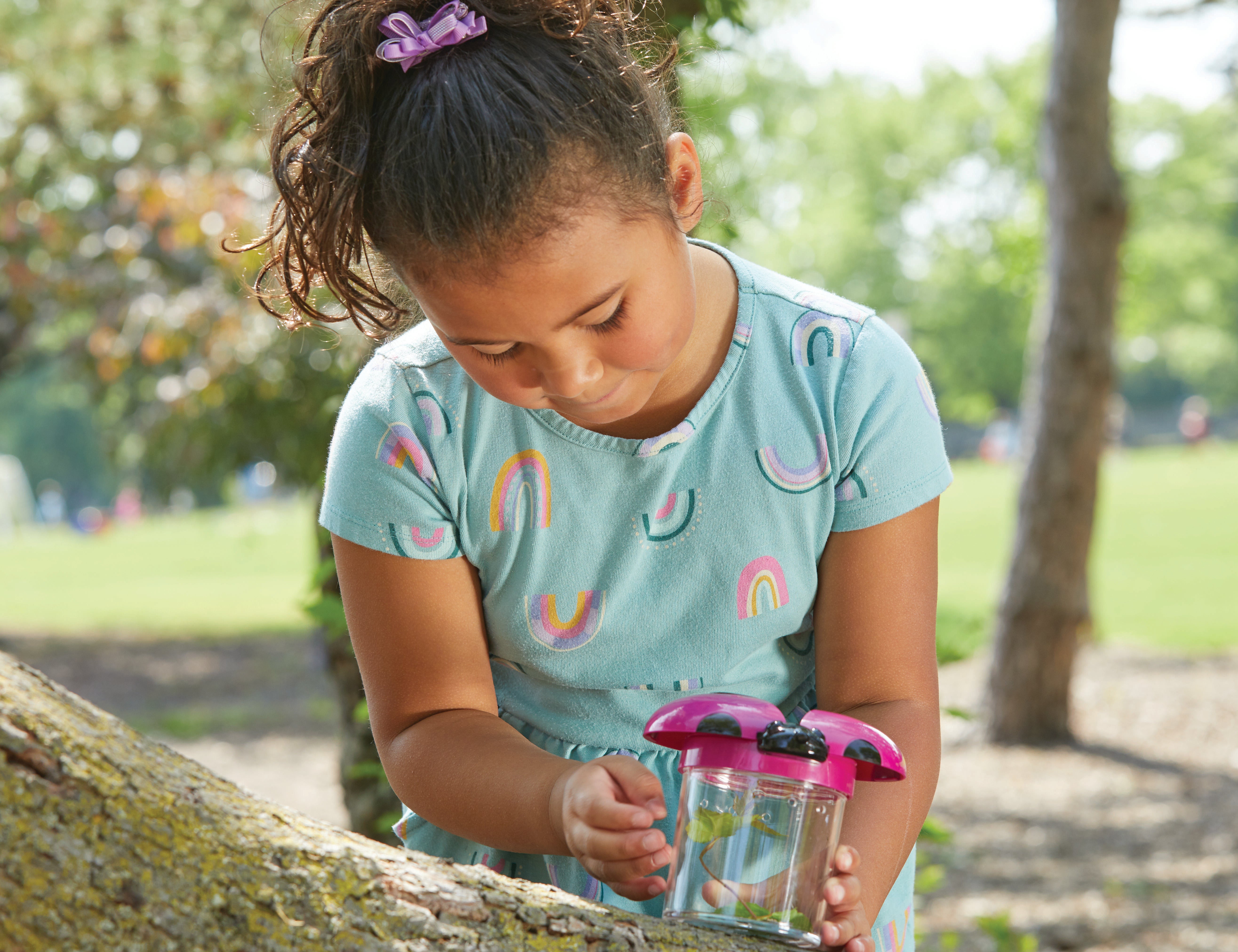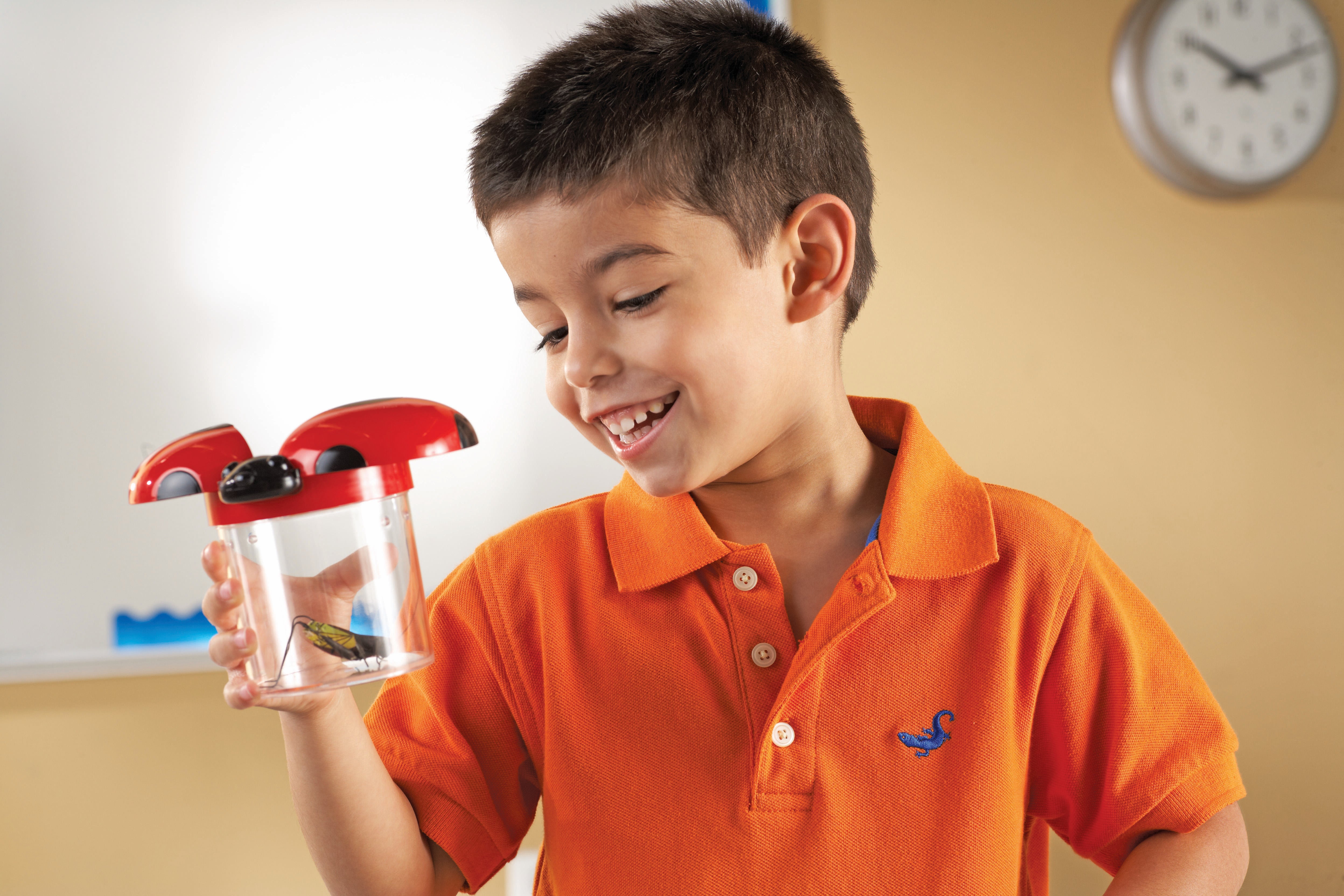 Learning Resources Big View Jars are colorful jars which have ladybug wings that open to invite little learners to investigate insects. Even children who normally shy away from bugs will be excited to capture and observe critters (and other items) in these engaging observation jars. Wings open to reveal a 3.5x magnifying lens. Screw-on cap and air vents keep specimens secure. Durable plastic jars measure 4-1/2 Dia x 3-1/2 H inches. Grades PreK and Above, Ages 3 and Above. Set of 6.