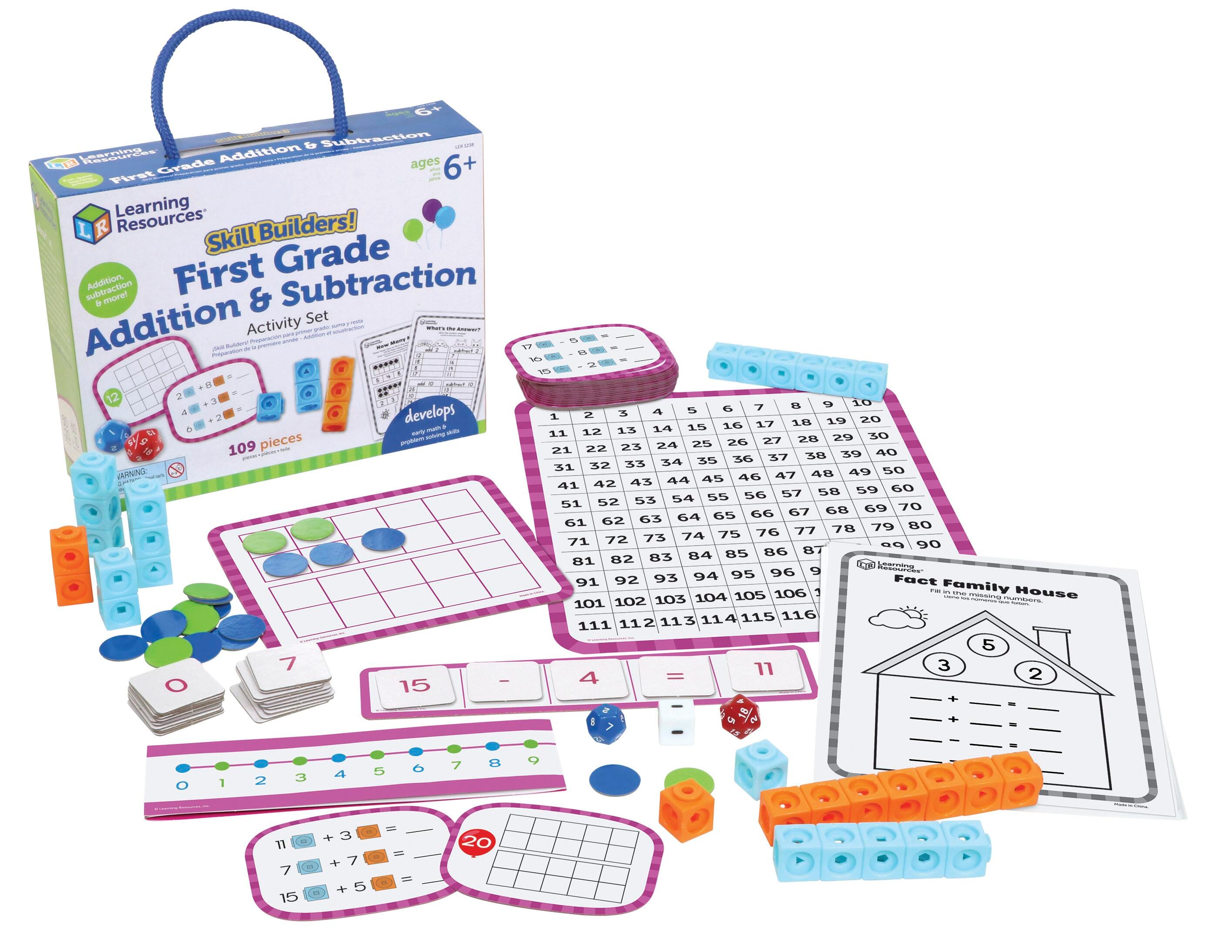 Play your way to classroom-ready early math skills! Set your kids on the path to elementary school success with the fun, quick first grade learning materials found in the Skill Builders! 1st Grade Addition & Subtraction activity set from Learning Resources