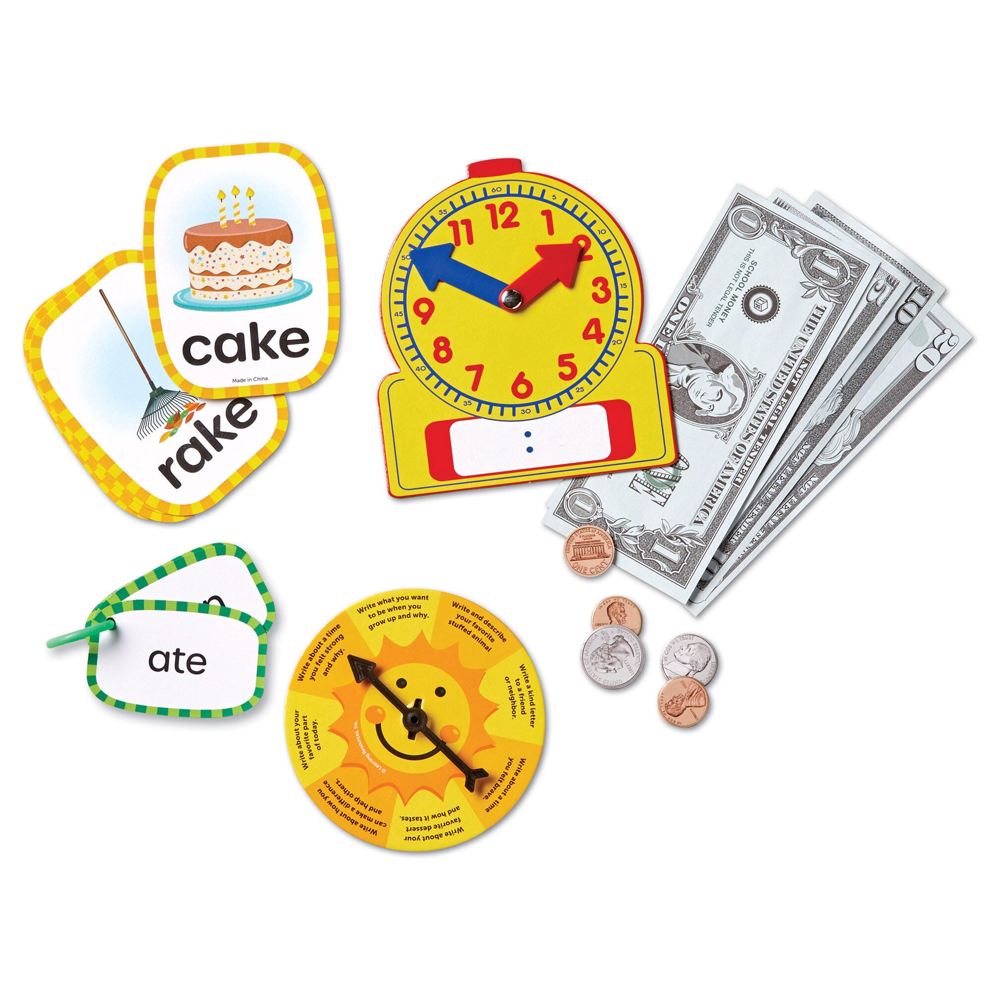 Turn summer into a season of learning adventures! This extensive school readiness kit comes with everything learners need to bridge the gap between kindergarten and first grade and prepare for a new year of elementary school success. This set’s activities help users learn how to manage time and money, learn to read and write, count to 120, and more! Plus, activities including shape scavenger hunts and counting action cards get participants outside and moving as they learn. The Skill Builders! Summer Learning Activity Set comes with a fun write-and-wipe activity book filled with reading games and handwriting practice for learners, plus a summer calendar to help them stay on track and count down the days until school starts. When learning is done for the day, all of these fun activities return to the set’s reusable storage box for easy clean-up.Features