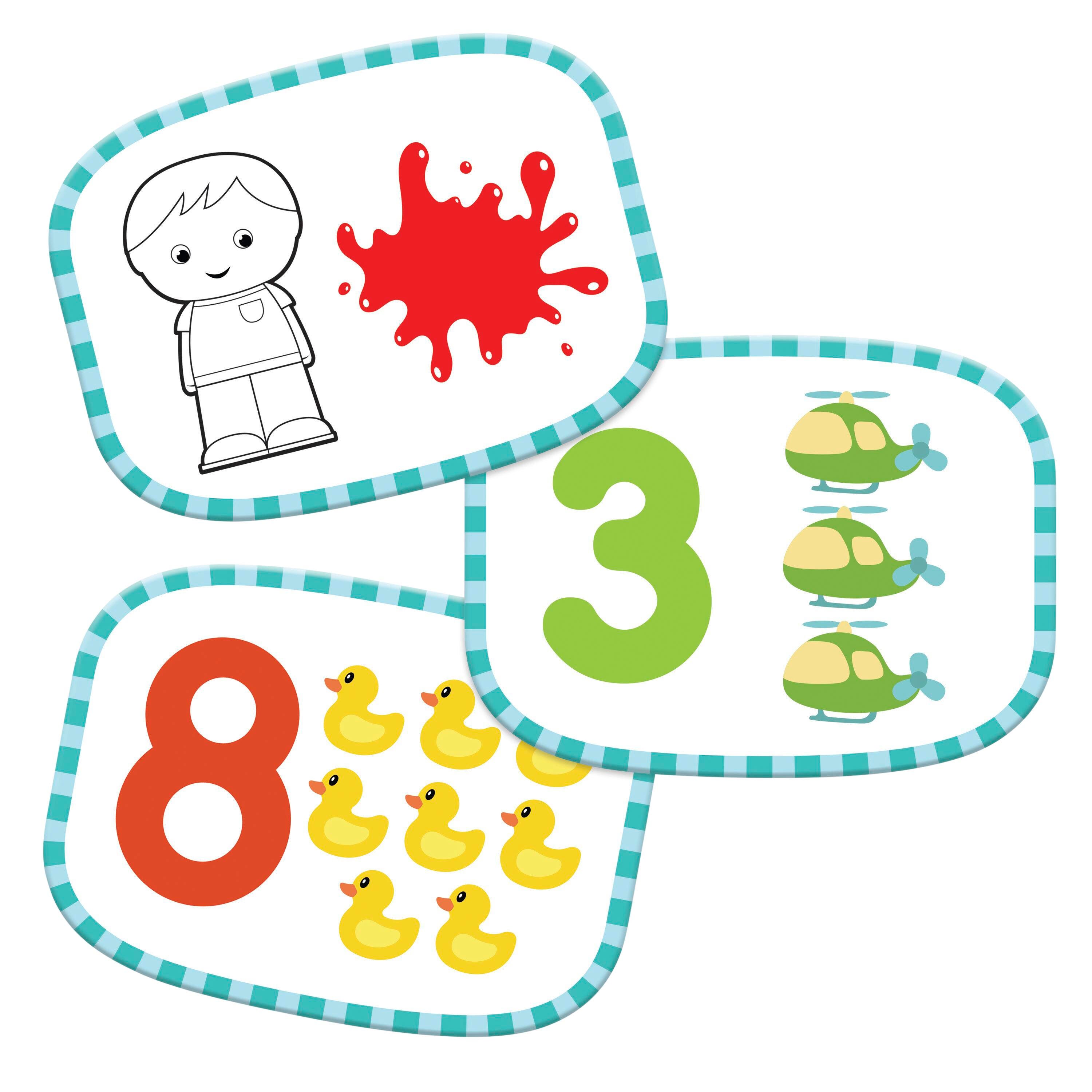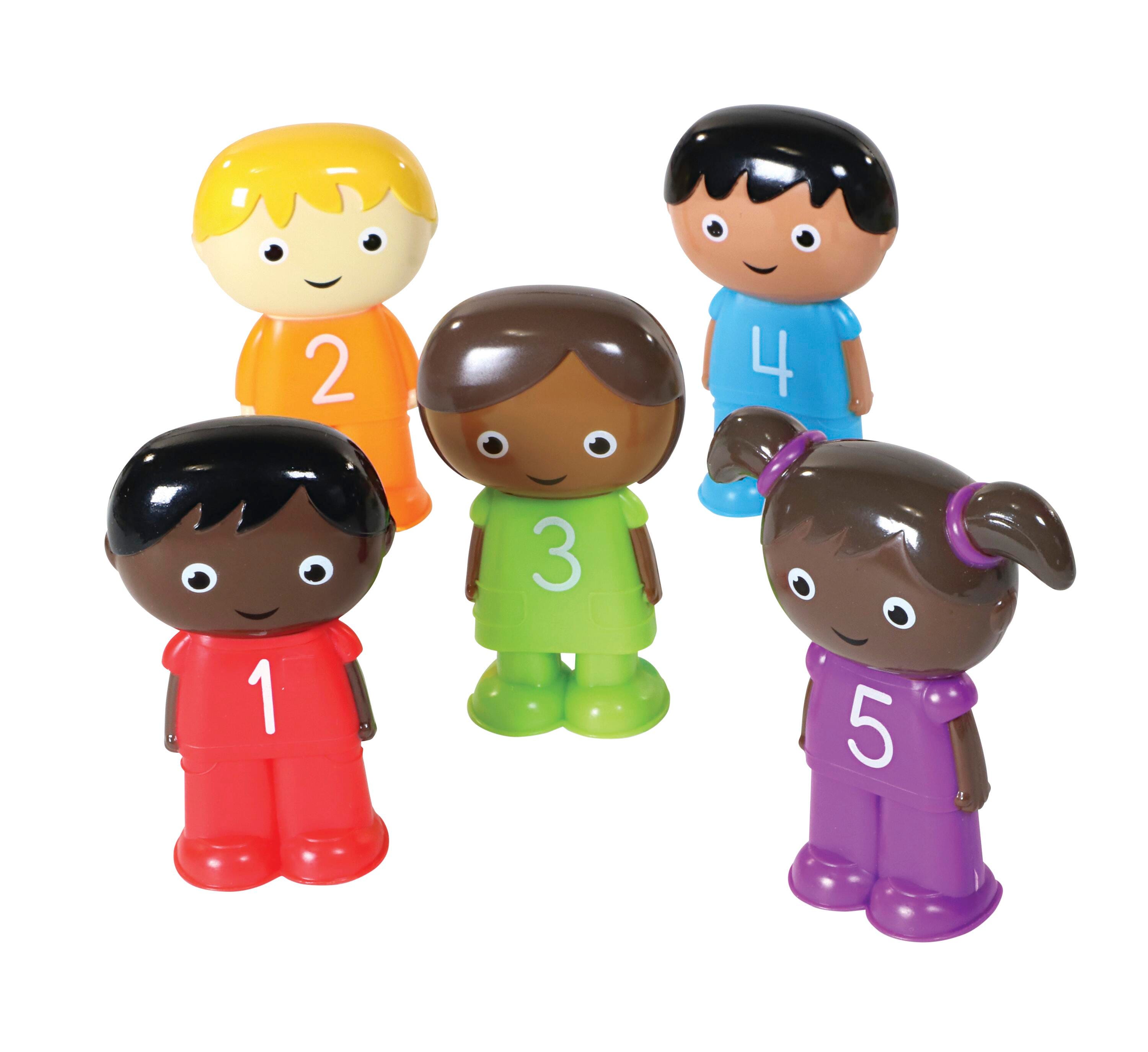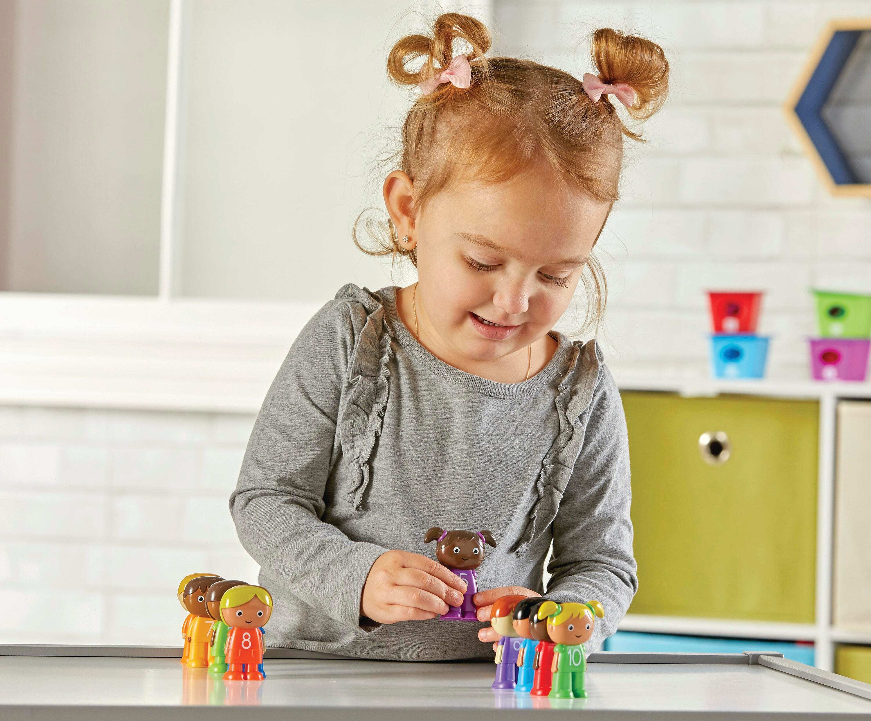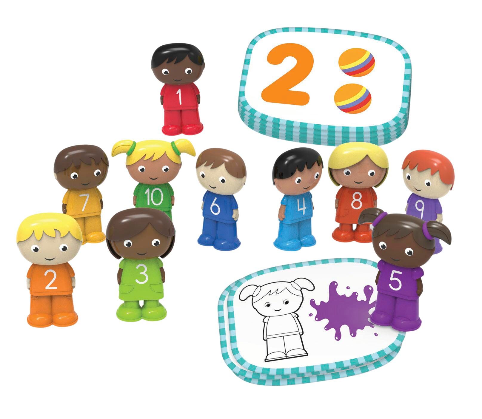 The Counting Kids are here to help children build preschool number and color skills through tactile play! This fine motor manipulative set includes 10 jumbo counters designed with rounded edges for little hands and 10 corresponding double-sided Activity Cards. Each Counting Kid measures 2-1/4 H inches. This set is easy to clean and simple to store when not in use. Perfect for playrooms and preschools. Designed for toddlers and children ages 2 and older.Features