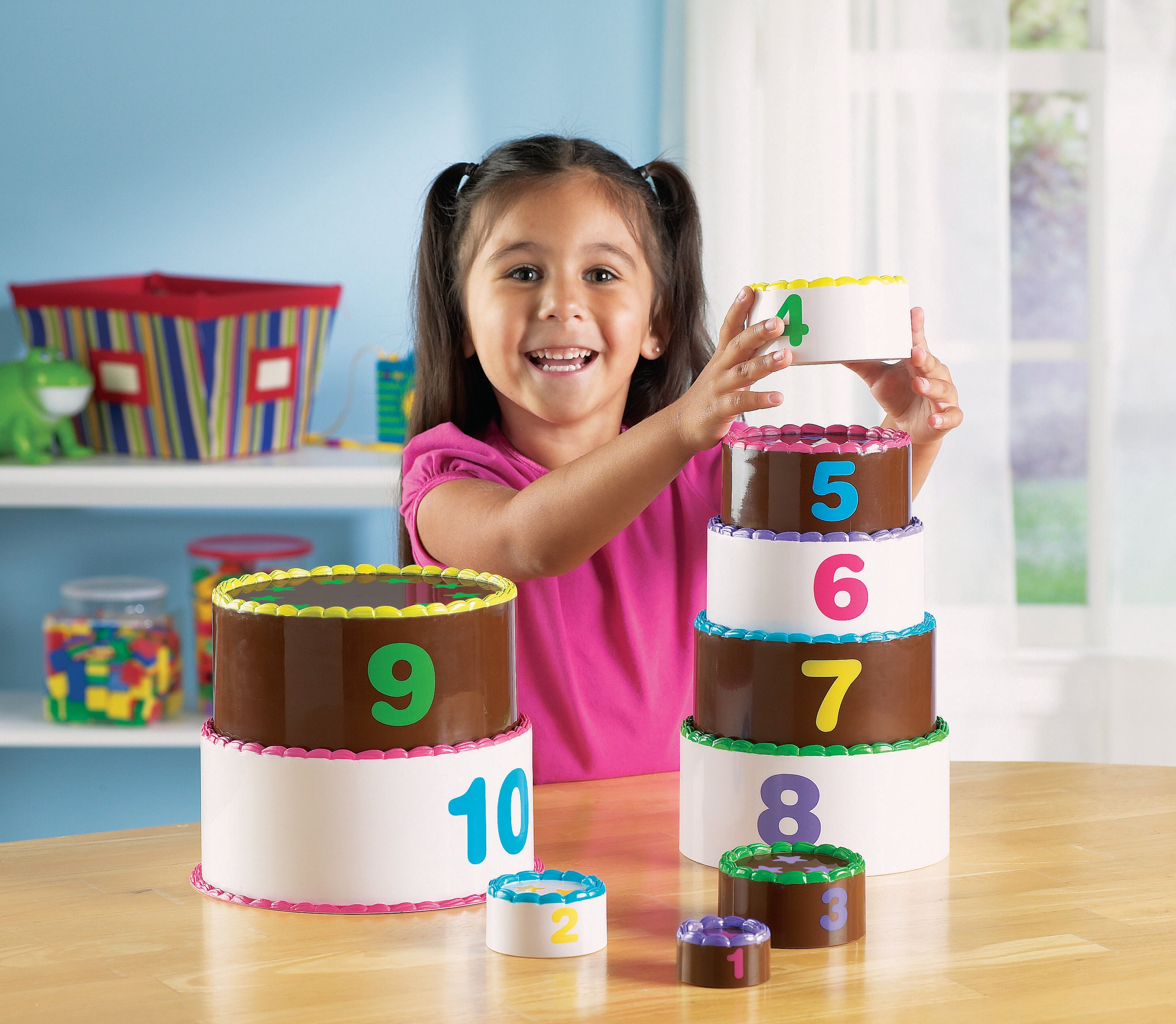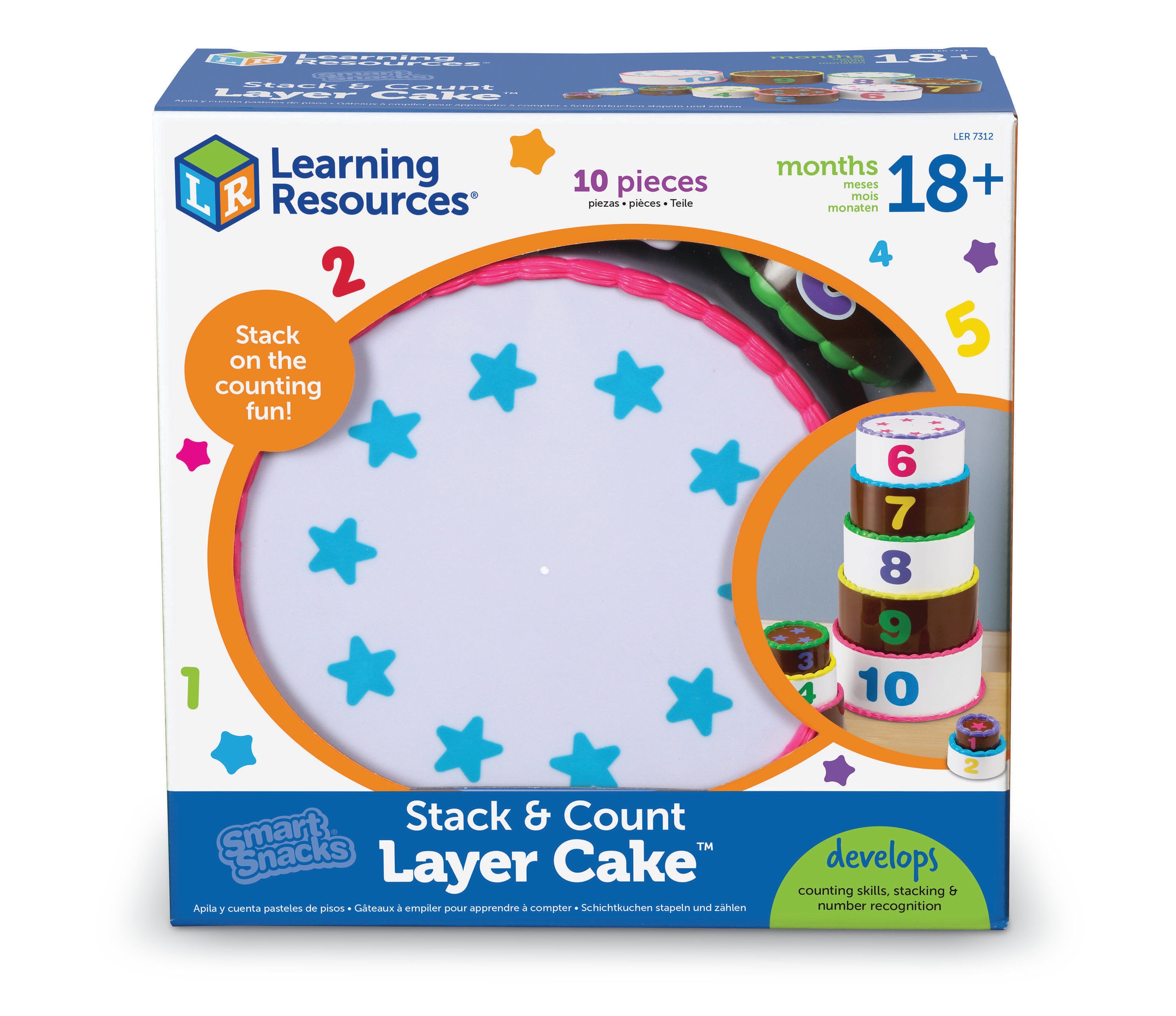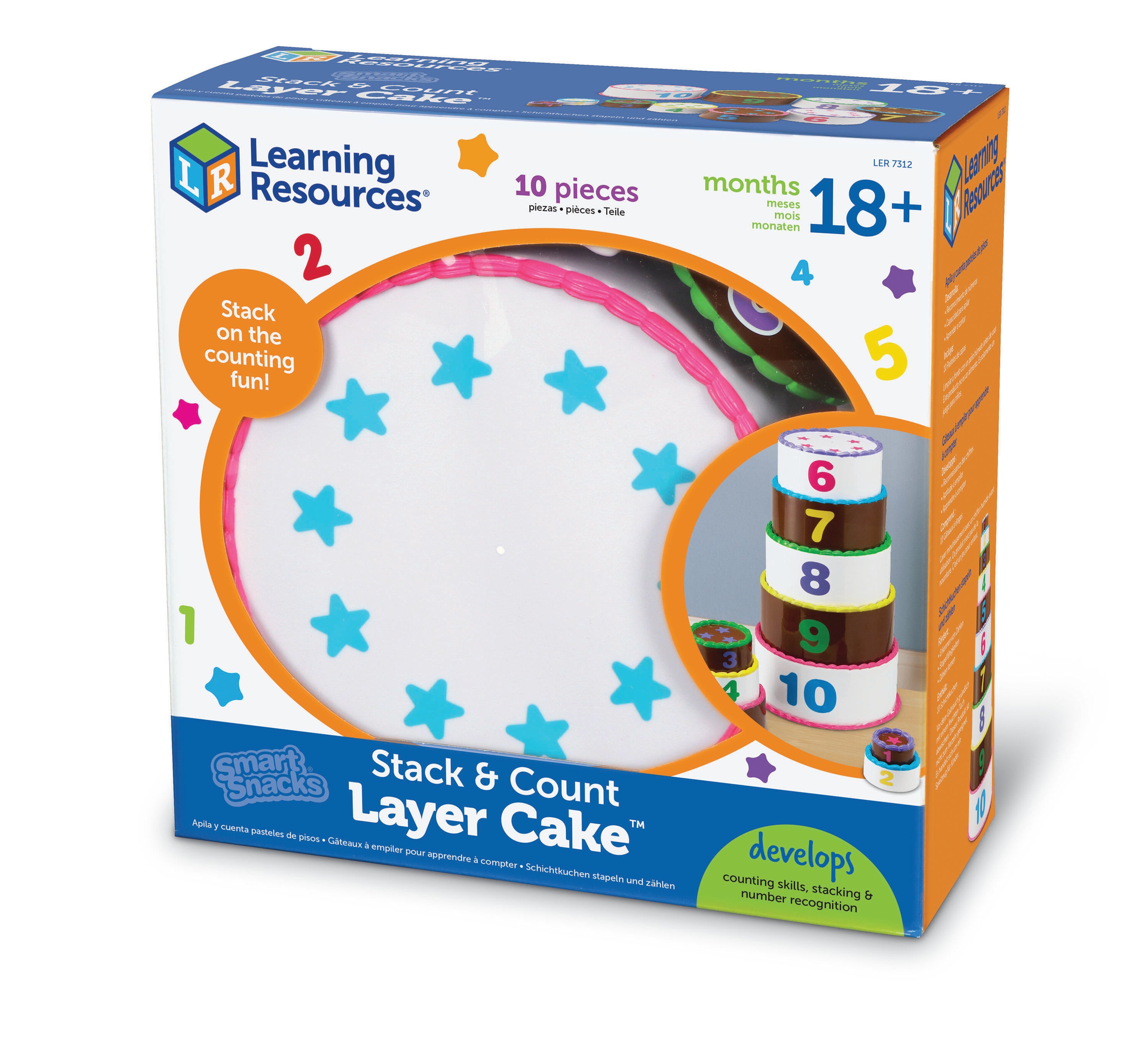 Learning Resources Smart Snacks Start and Count Layer Cake features 10 layers of countable decorations and numbers to build recognition and sequencing. Color-coded chocolate and vanilla layers introduce odd and even numbers. Stands 22 H inches when stacked. Ages 2 and up.