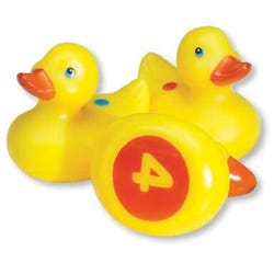 Each duck is designed to be counted, with a number on the underside and dots corresponding to that number on its back. Ducks with odd numbers have blue numbers, while ducks with even numbers have red, making for the perfect introduction to early sorting skills and basic math concepts. Made for play in the water, these ducks are designed with colorful plastic that is mold-resistant. Measure 3 L x 2-1/2 W inches. For ages 18 months and up.Features