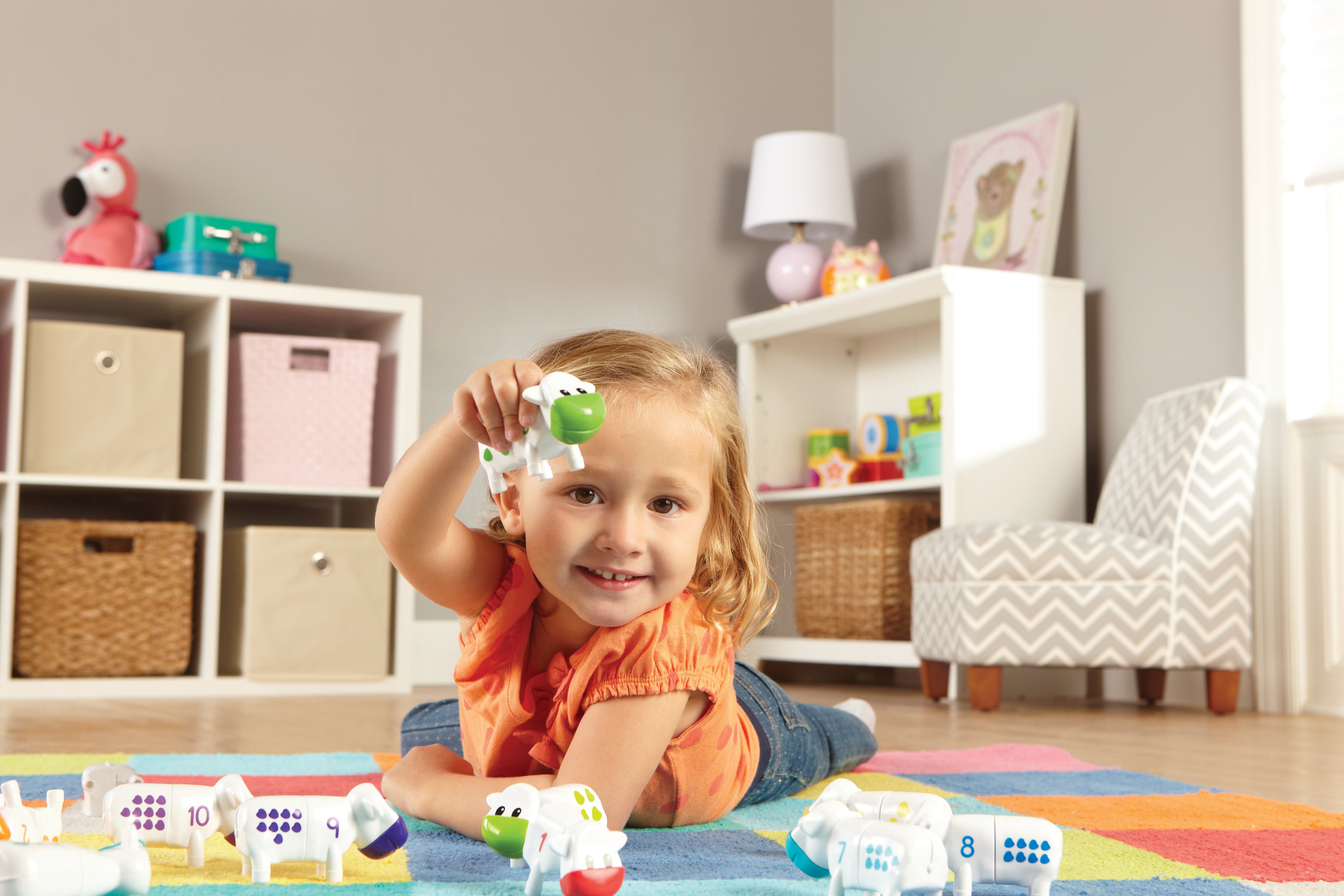 Learning early math skills is a snap with these two-piece farm friends! Cows feature a number (1-10) on the front with the corresponding spots on his back to teach number identification, counting, and numerical order. Cows are also color-coded for color matching and self-checking. Completed cow measures 3-3/4 L x 1-3/4 W x 2 H inches.