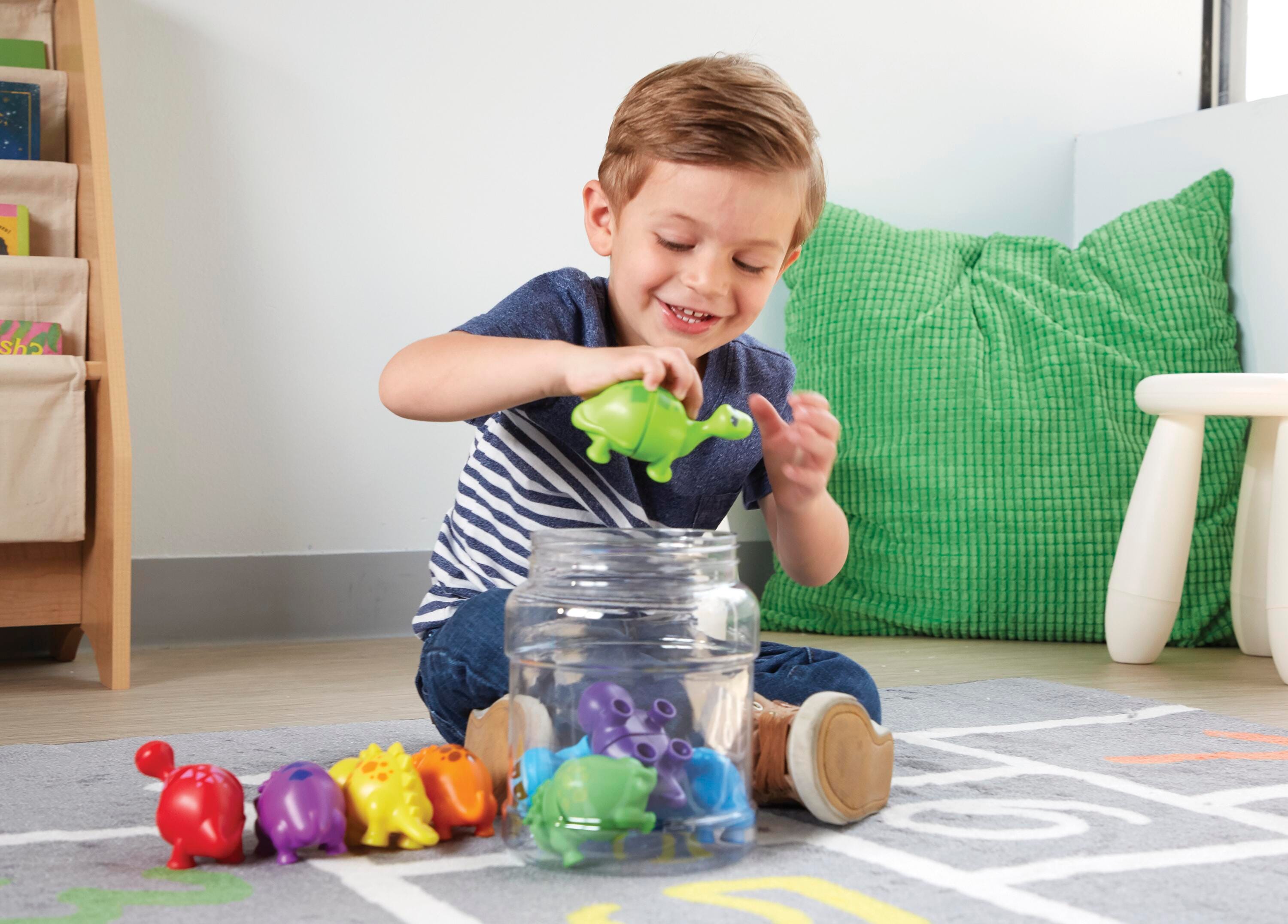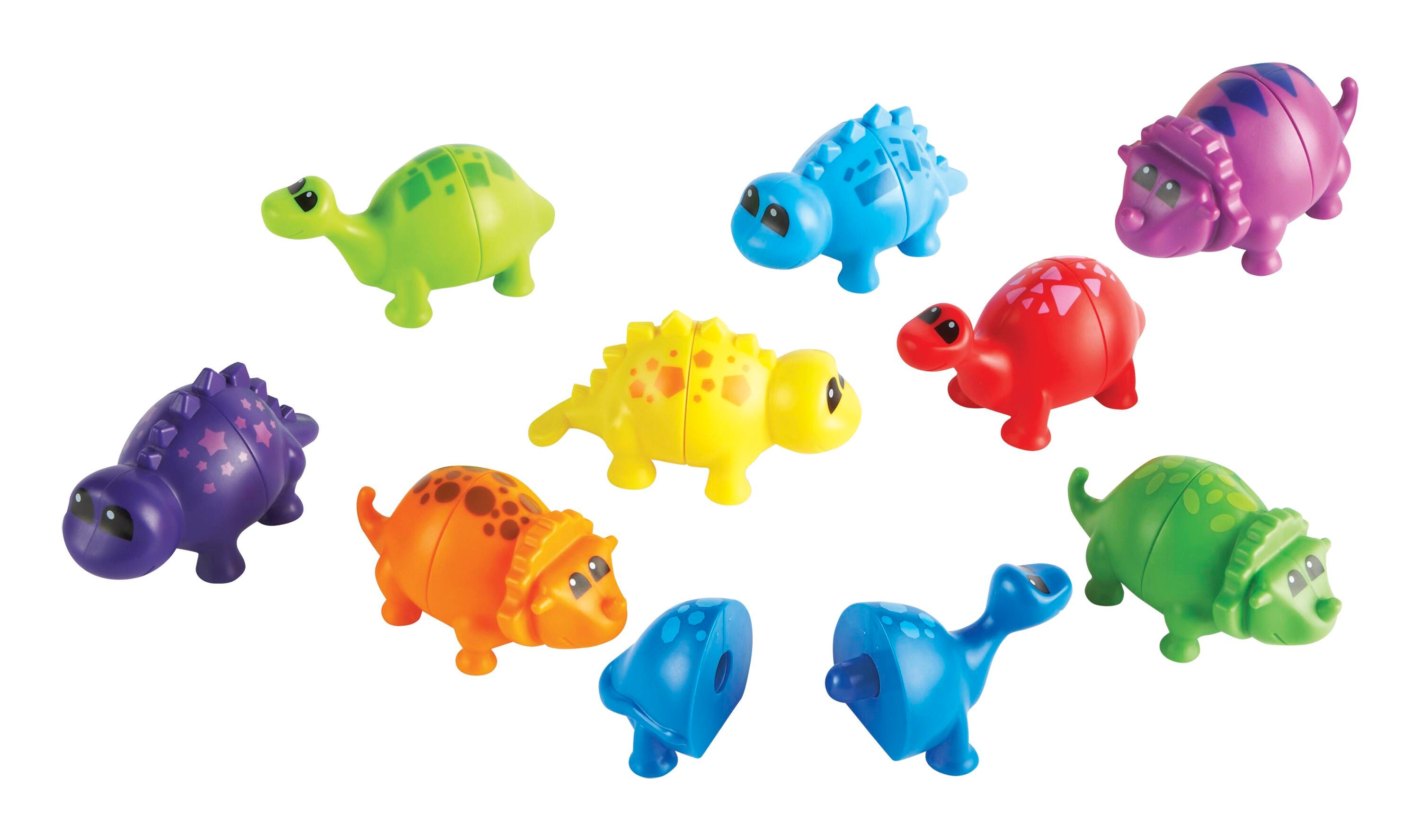 Little ones can snap these little dinos together and spark an early love of learning about colors and shapes. These colorful dinosaurs mix and match together, so little learners have endless hours of fun while they build up their fine motor skills.