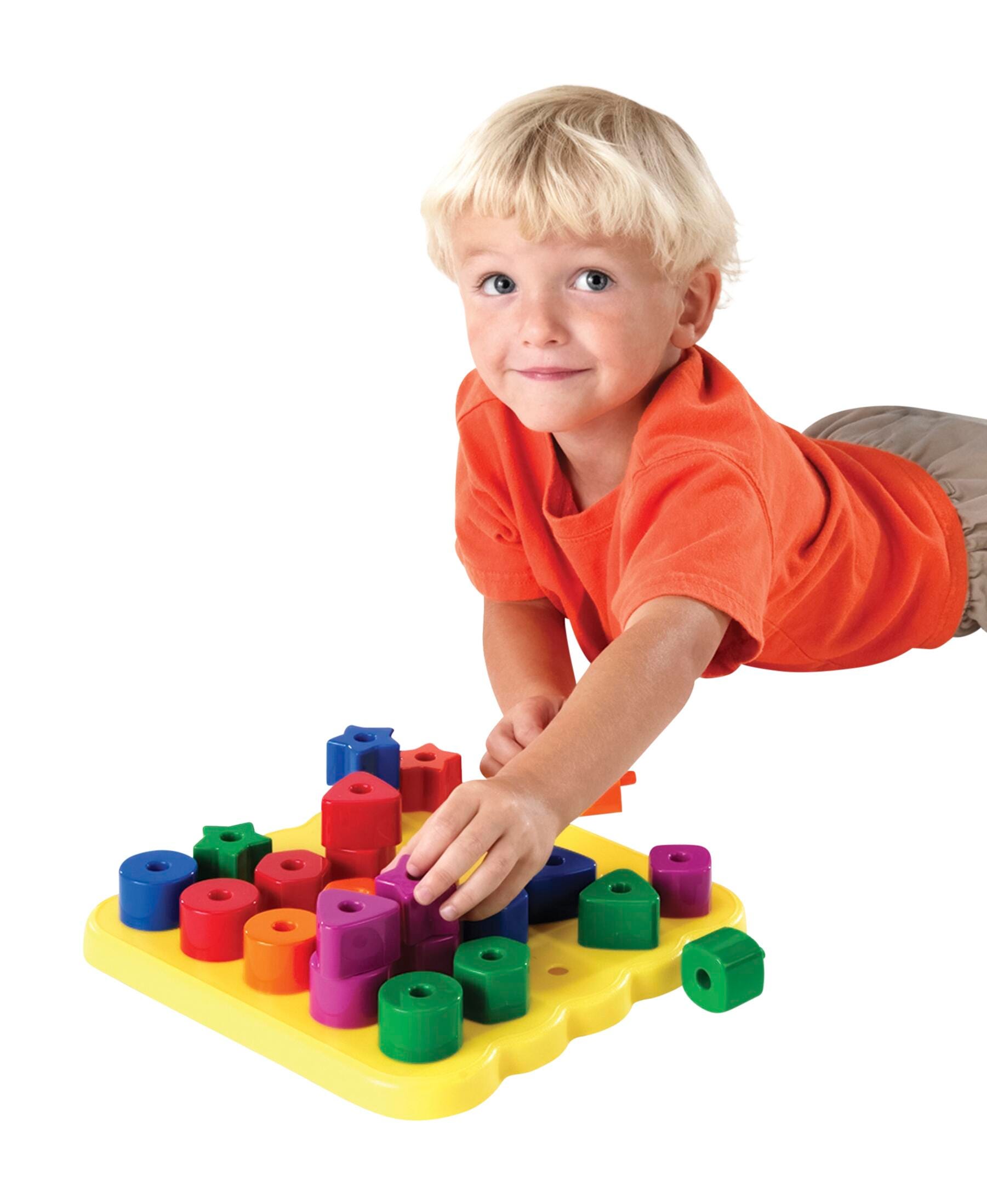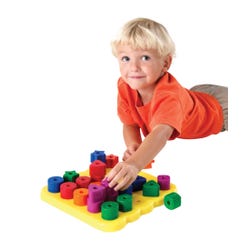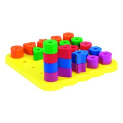 Arrange shapes in the pegboard according to comparable attributes! Peg shapes (square, circle, triangle, star, and hexagon) come in 5 colors. Includes 25 large pegs measuring 1½ x 1¼ inches for easy handling. Durable plastic pegboard measures 9½ x 9½ x ½ inches. For ages 2 and up.Features