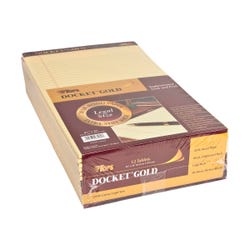 TOPS Docket Gold Legal Pads contain 50 sheets of 20 lb paper measuring 8-1/2 x 14 inches. Features double-stitched binding and Letr-Trim perforations for easy tear out. Legal pads have extra-sturdy 60 pt chipboard backs. Sold as 12 per pack. SFI Certified Sourcing. Canary.