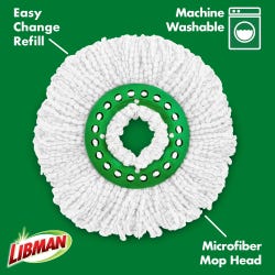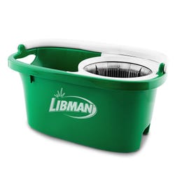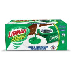 The Tornado Spin Mop® System from Libman delivers an all-in-one mopping system to tackle any mess.The mop has a large microfiber, machine-washable head that absorbs more water so your floors dry more quickly. The heavy-duty bucket and spinning chamber efficiently remove water and debris from the mop. The lower handle is precision-molded, impact-resistant, and allows you to control the dampness of the mop.Features