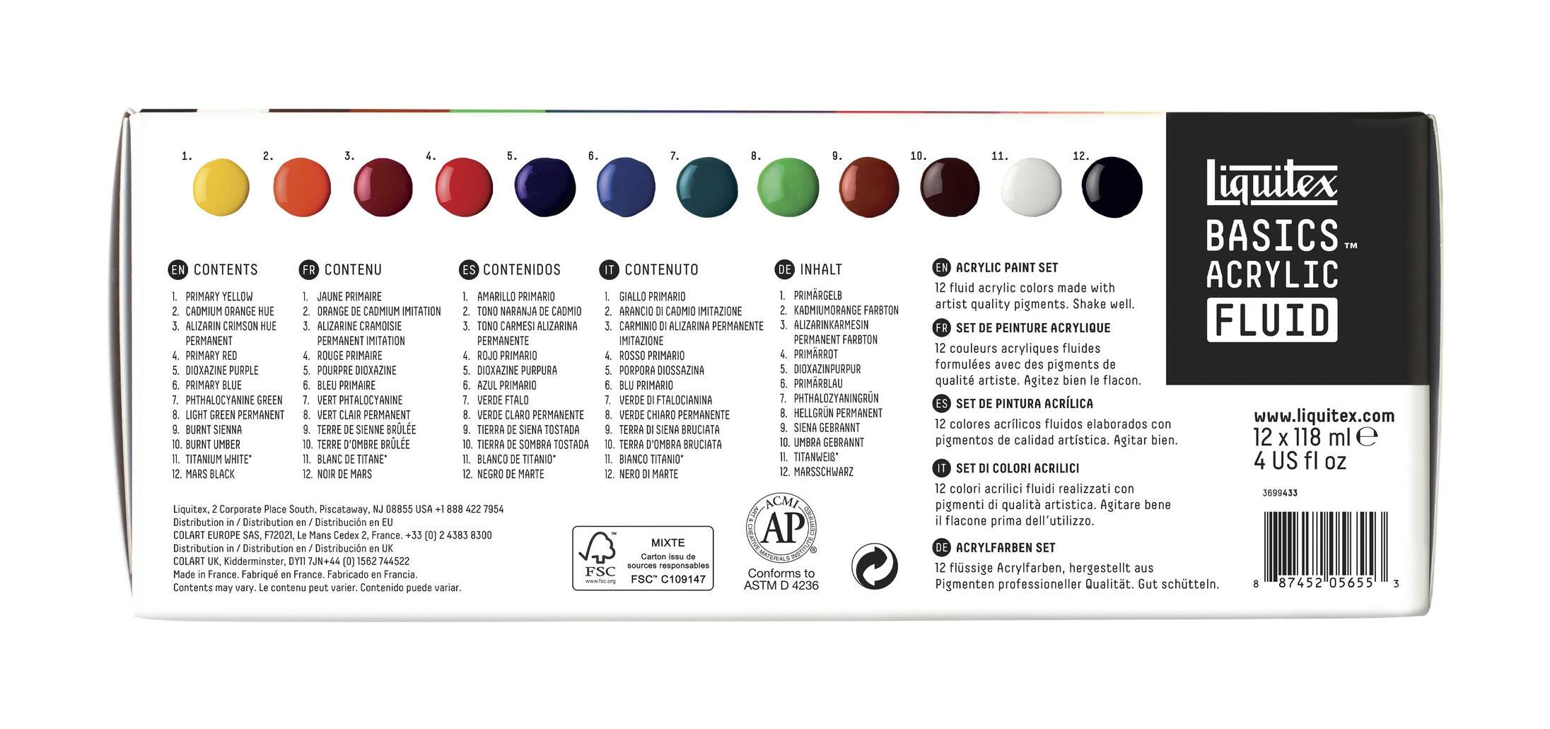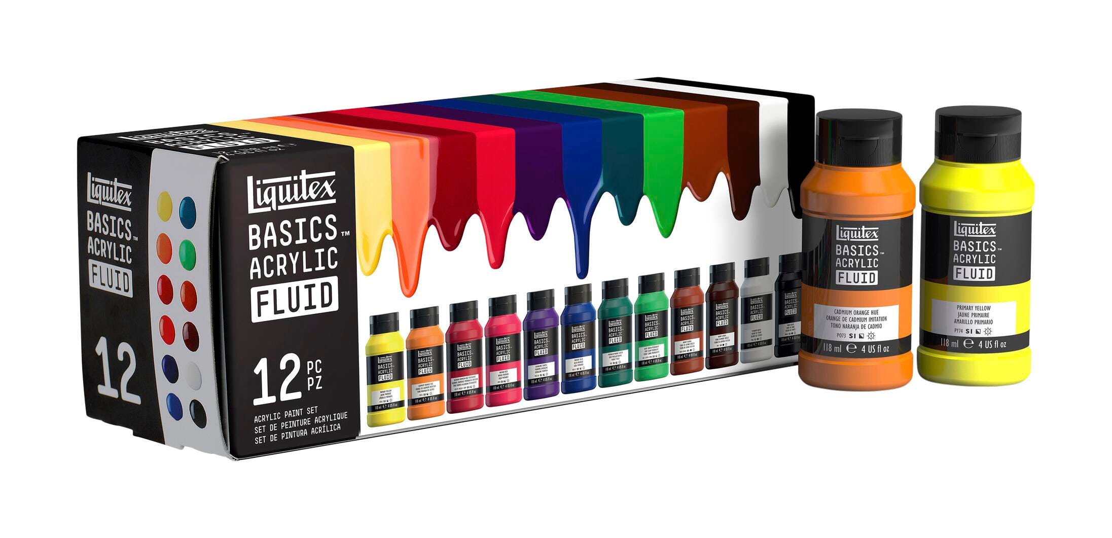 Liquitex Basics Acrylic Fluid, 118 Milliliter, Set of 12Features