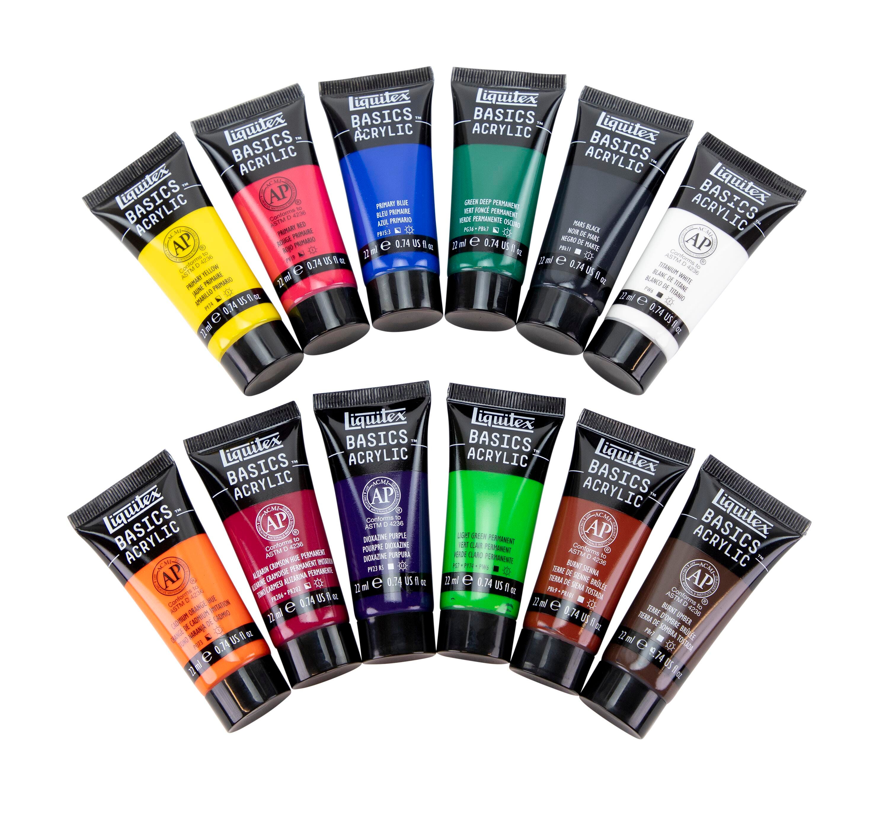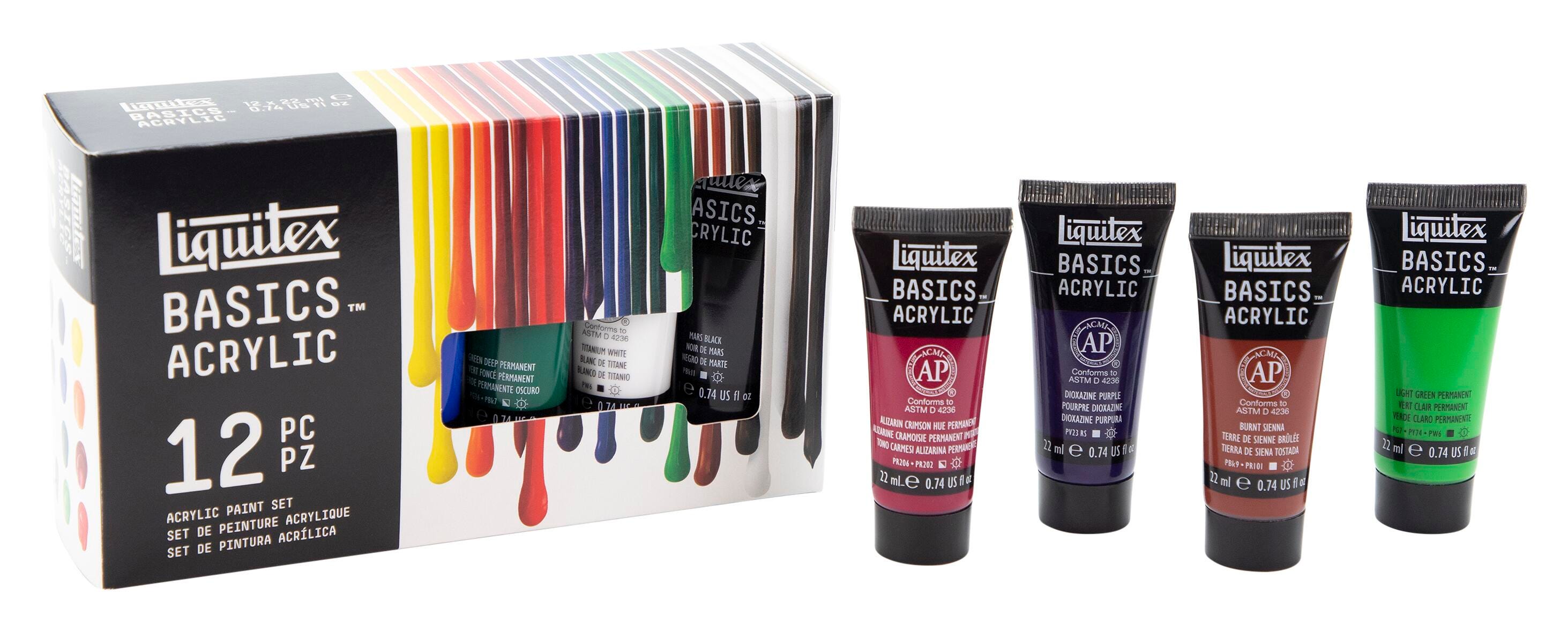 Liquitex BASICS Acrylic Paint Set, 0.74 Ounce Tubes, Assorted Colors, Set of 12