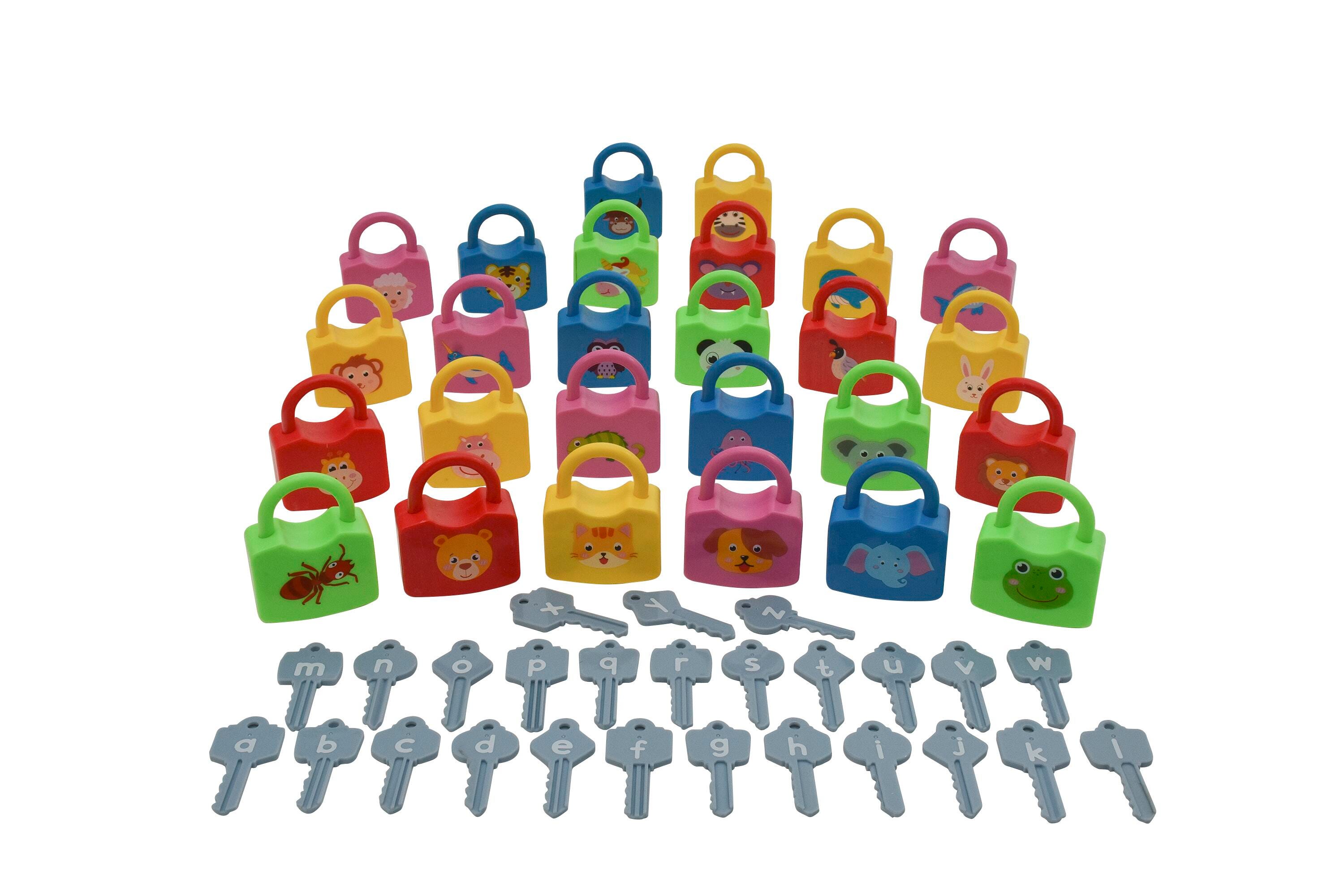 Plastic locks with correpsonding keys makes learning the alphabet fun! Locks will only open when the correct key is used. Locks are 2-1/2 x 3-1/4 x 1-1/8 inches. Keys are 2-5/8 x 1-1/4 inches. Ages 3 and up.Features