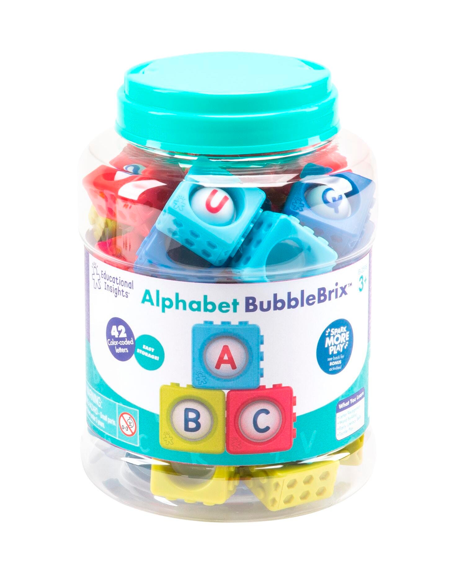 Press a letter bubble, feel it pop, learn its name and sound, and connect it to another letter block to build simple words, practice spelling, and early literacy—or create your own buildable masterpiece! Includes 42 BubbleBrix, handled storage bucket, and activity guide packed with early literacy activities. Educational Insights has been helping kids learn through play for the last 60 years. They take great pride in working with experts in many distinct fields—from scientists to teachers to artists—to ensure the products are always the very best they can be.Features