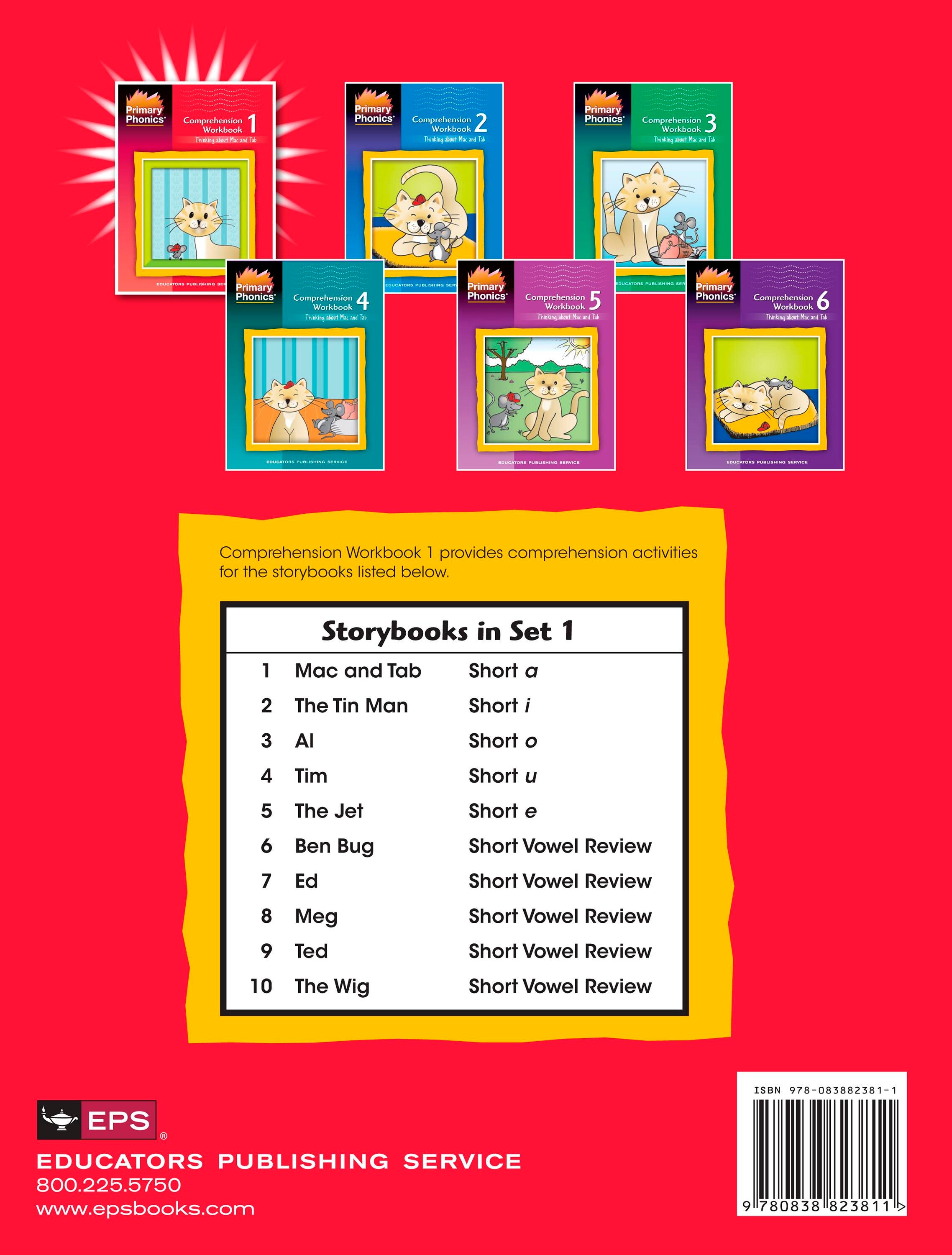 Comprehension Workbook 1 is the comprehension component to Primary Phonics Storybooks 1. This book contains early comprehension exercises designed for beginning readers. The addition of a comprehension component to workbook exercises and story reading improves the effectiveness of the Primary Phonics series and forges a closer student-text relationship while enhancing analytical skills. Exercises are included for each story in the set, which focus on include sequencing, story elements, and story recall. Follow-up activities include writing and illustration. Skills addressed in this workbook include sequencing, identifying characters and events, Literal comprehension questions, and matching sentences to pictures. Primary Phonics is a systematic, phonics-based early reading program that facilitates individualized instruction through flexible, skills-based workbooks and storybooks that correspond to students ability levels.