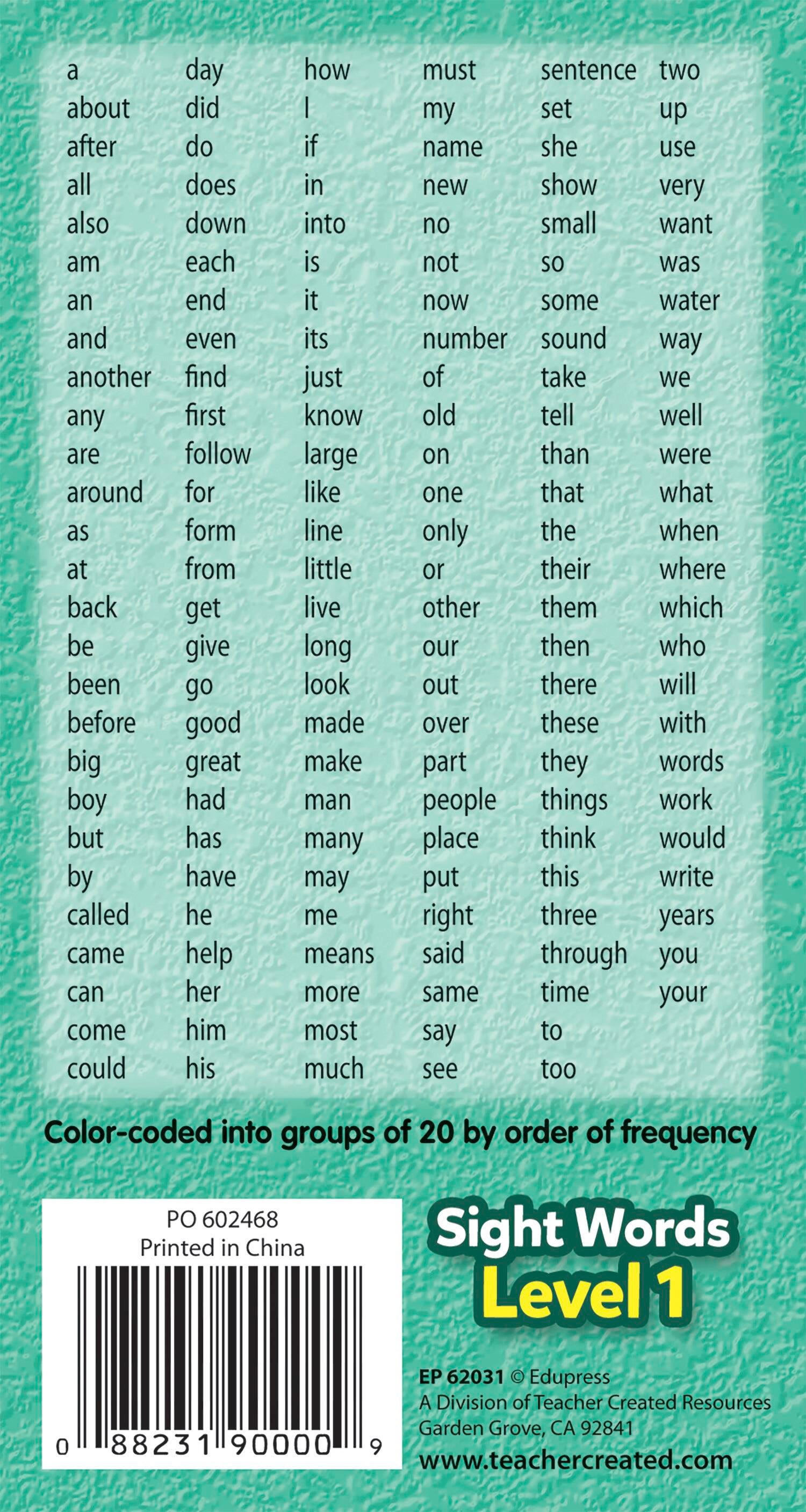 Teacher Created Resources Double-Sided Sight Words Flash Cards, Level 1, Set of 170