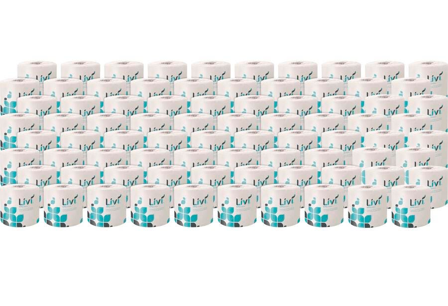 Livi Leaf VPG Bath Tissue, 2 Ply, 4.49 x 3.98 Inches, 500 Sheets/Roll, White, Virg Inches Fiber, Embossed, Absorbent, For Office Building, Restroom, 80 / Carton