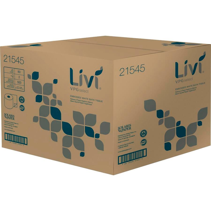 Livi VPG 2-Ply Bath Tissue, Embossed, Pack of 80 Roll, White