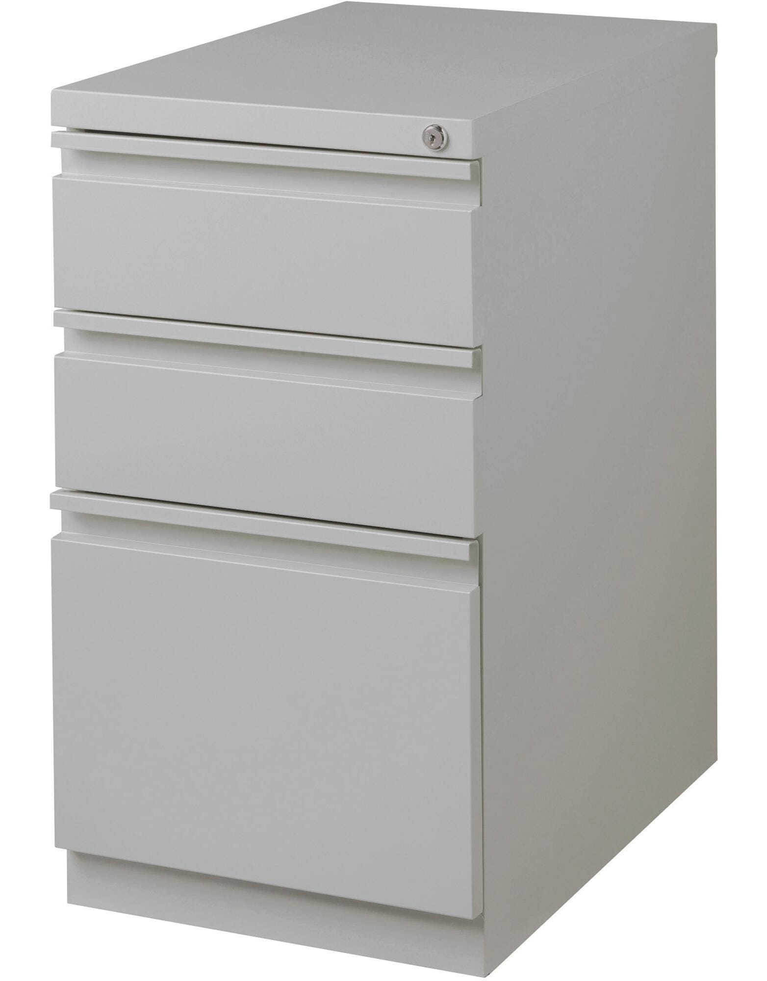 Lorell 20 inch mobile pedestal file features a high-sided file drawer with full extension for great access to your frequently accessed files. Design also features two box drawers so you have plenty of space to store supplies. Steel ball-bearing, drawer suspension delivers smooth drawer opening and closing. Factory-installed, core-removable lock keeps your letter-size files secure. Drawer pull extends across the entire, recessed drawer front for easy access. Casters are hidden from view and move the pedestal easily when necessary. Steel pedestal offers a 19-7/8 inch depth to slide easily into your cubicle or other office configuration. Mobile pedestal file meets or exceeds applicable ANSI/BIFMA standards.