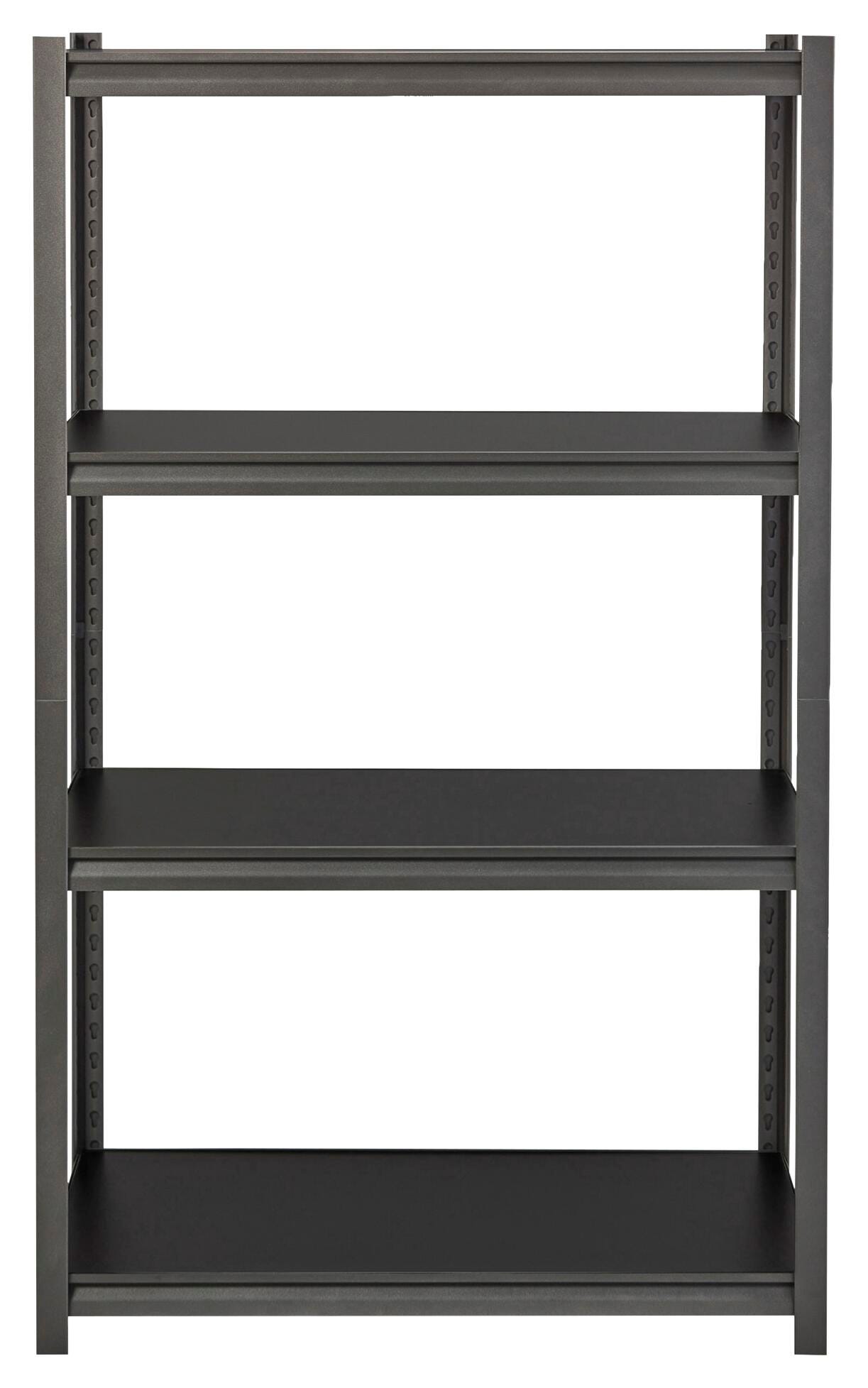 Iron Horse Riveted Steel Shelving offers a boltless design for simple assembly. It holds up to 3,200 pound of evenly distributed weight on its black laminate shelving. Shelves are supported by a steel frame with a powder-coat finish for durability. Shelving assembles vertically or horizontally.