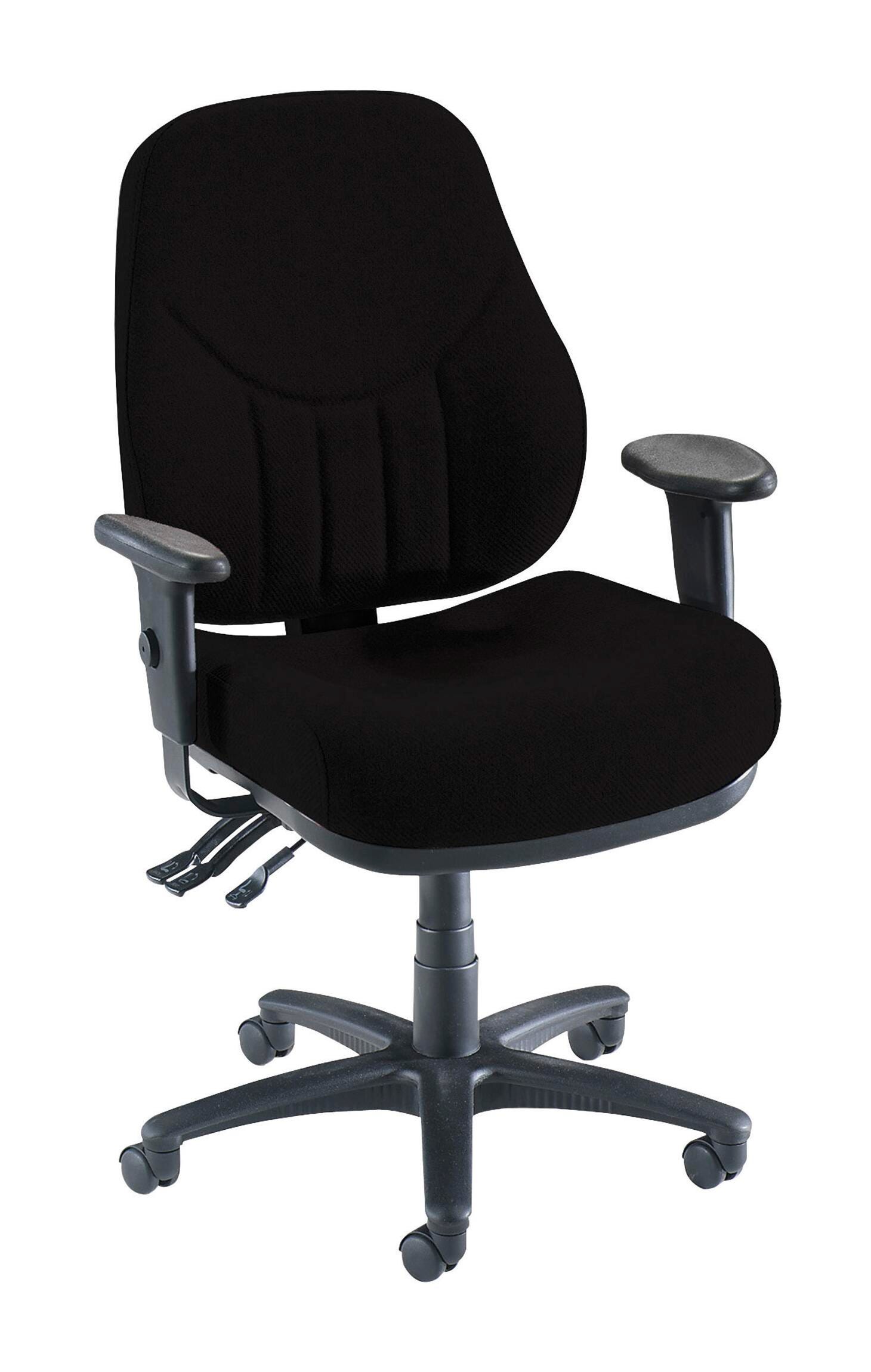 Lorell Baily Series High-back Multi-task Chair with molded seat and 20-1/2 in x 7 in x 23 in back provide added comfort. Chair featured with pneumatic seat-height adjustment from 18-9/10 in to 22-2/5 in, back-height adjustment, seat-depth adjustment, asynchronous control and 360-degree swivel. Height-adjustable back offers necessary support for comfort. Black frame chair with 250 lbs weight capacity has abrasion rating of 30,000 cycles. It features pronounced lumbar support with 2 in back height adjustment. Chair upholstery is made of 100% acrylic fabric. 26-7/8 in x 26 in x 39 in - 42-1/2 in. Black.