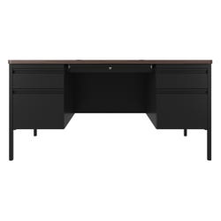 Lorell Fortress Series Walnut Top Teacher's Desk, Double Pedestal, 60 x 30 x 29-1/2 Inches, Walnut/Black